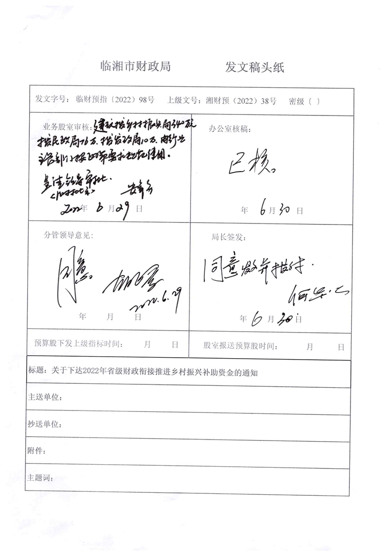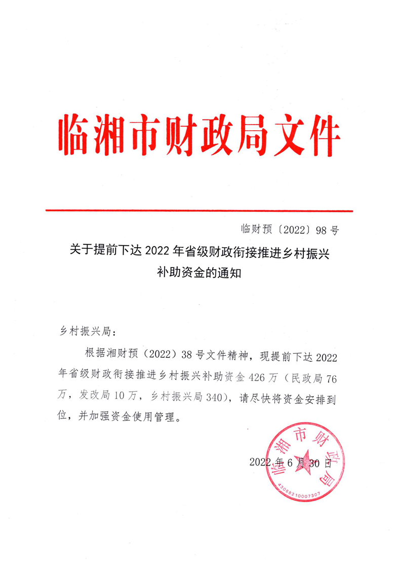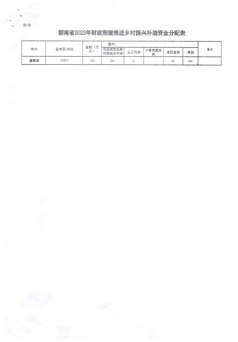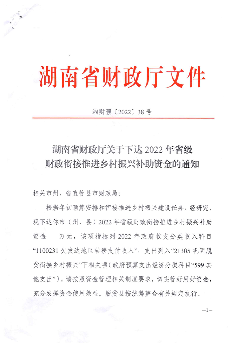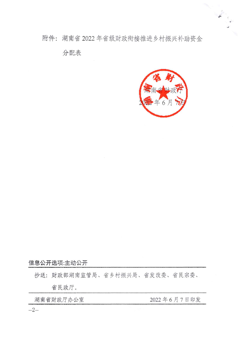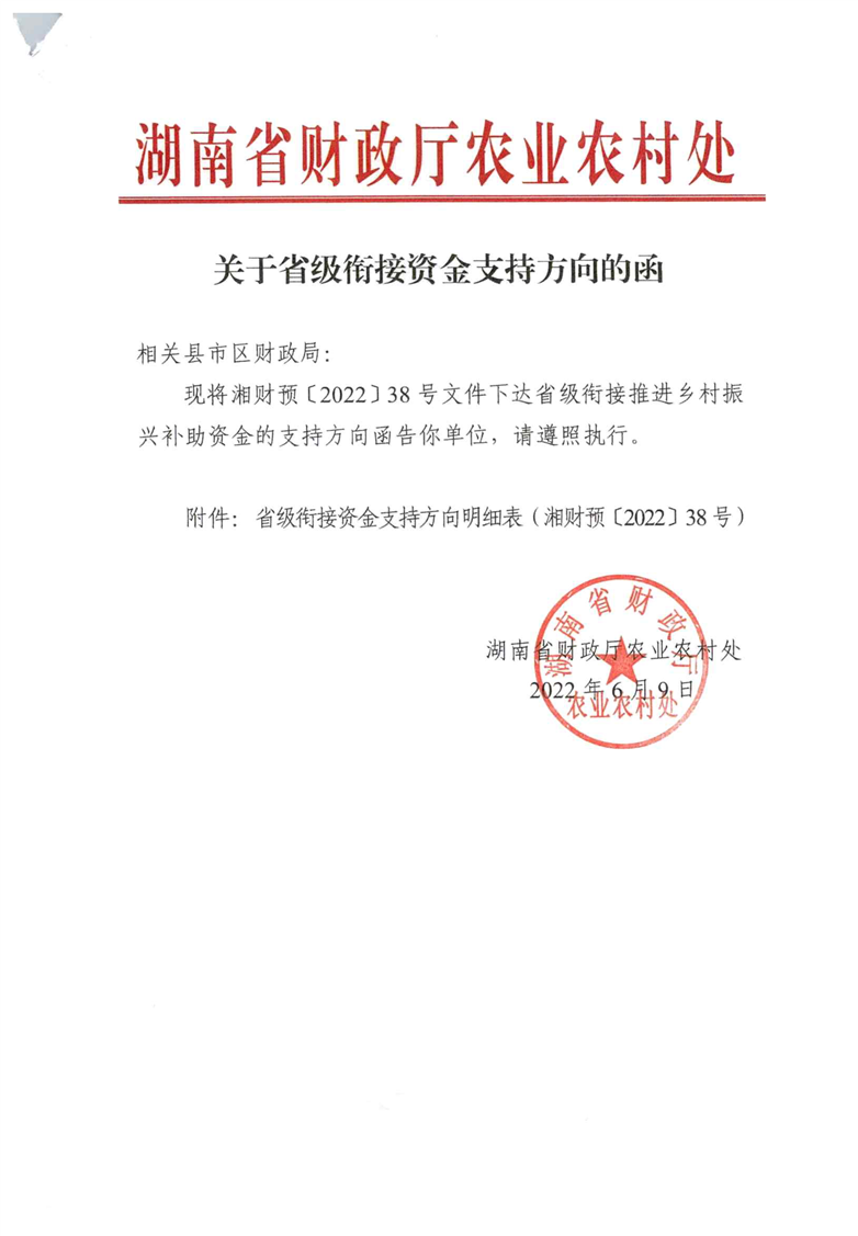 湘财预[2022] 38号湖南省财政厅关于下达2022年省级财政衔接推进乡村振兴补助资金的通知