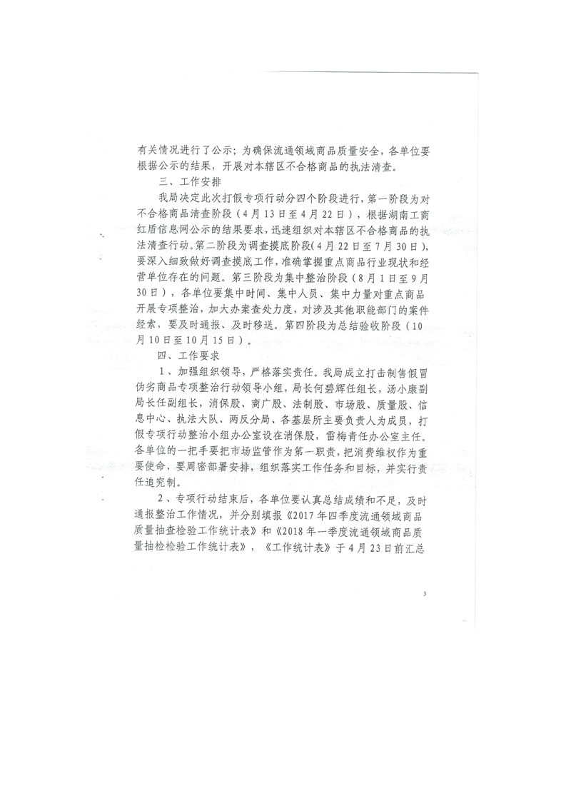 开展打击制售假冒伪劣商品专项整治行动工作方案