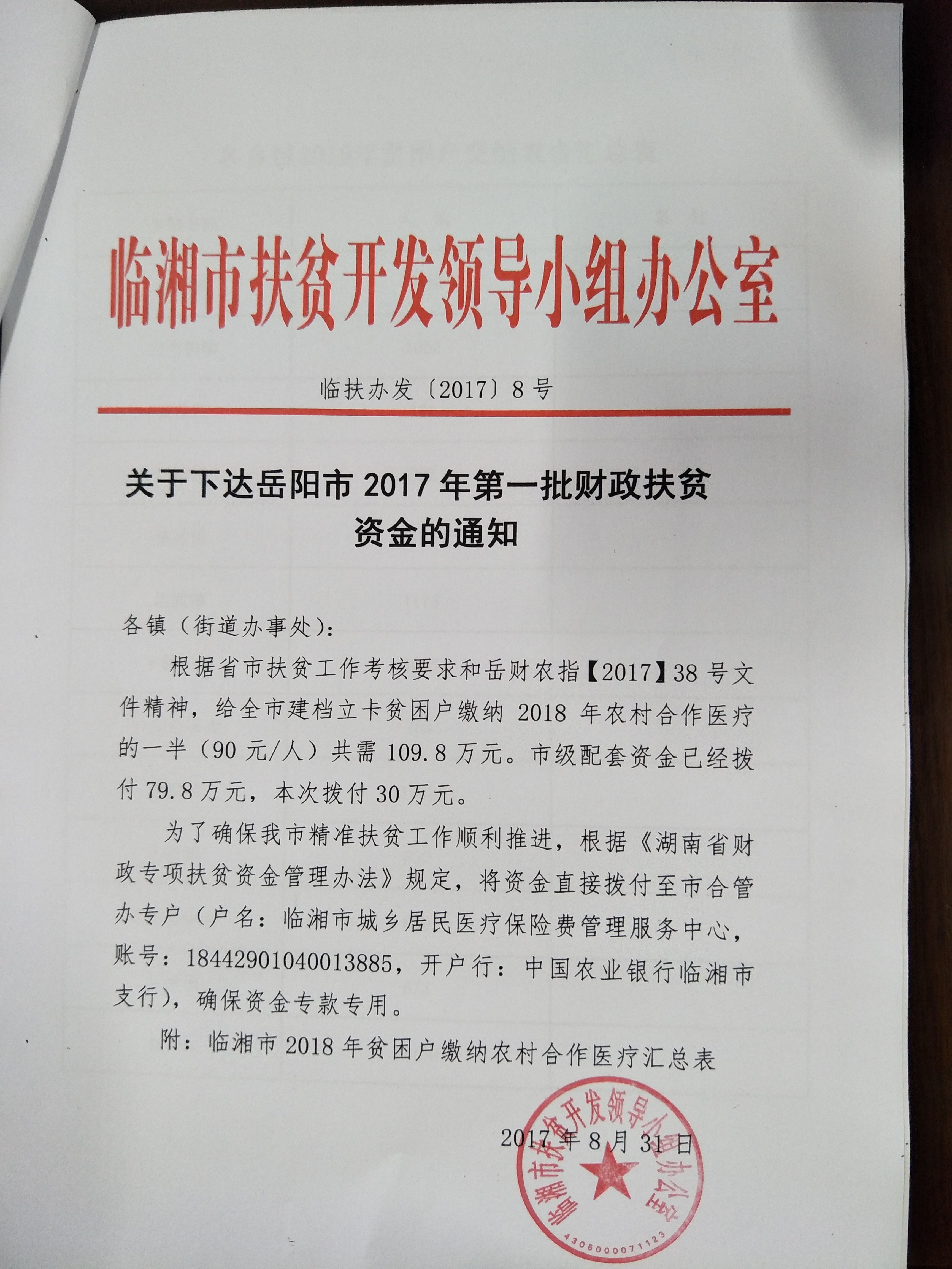 关于下达岳阳市2017年第一批财政扶贫资金的通知