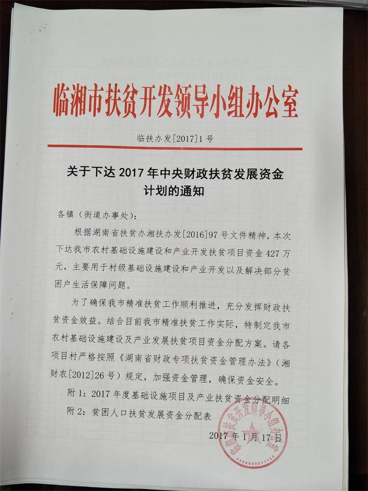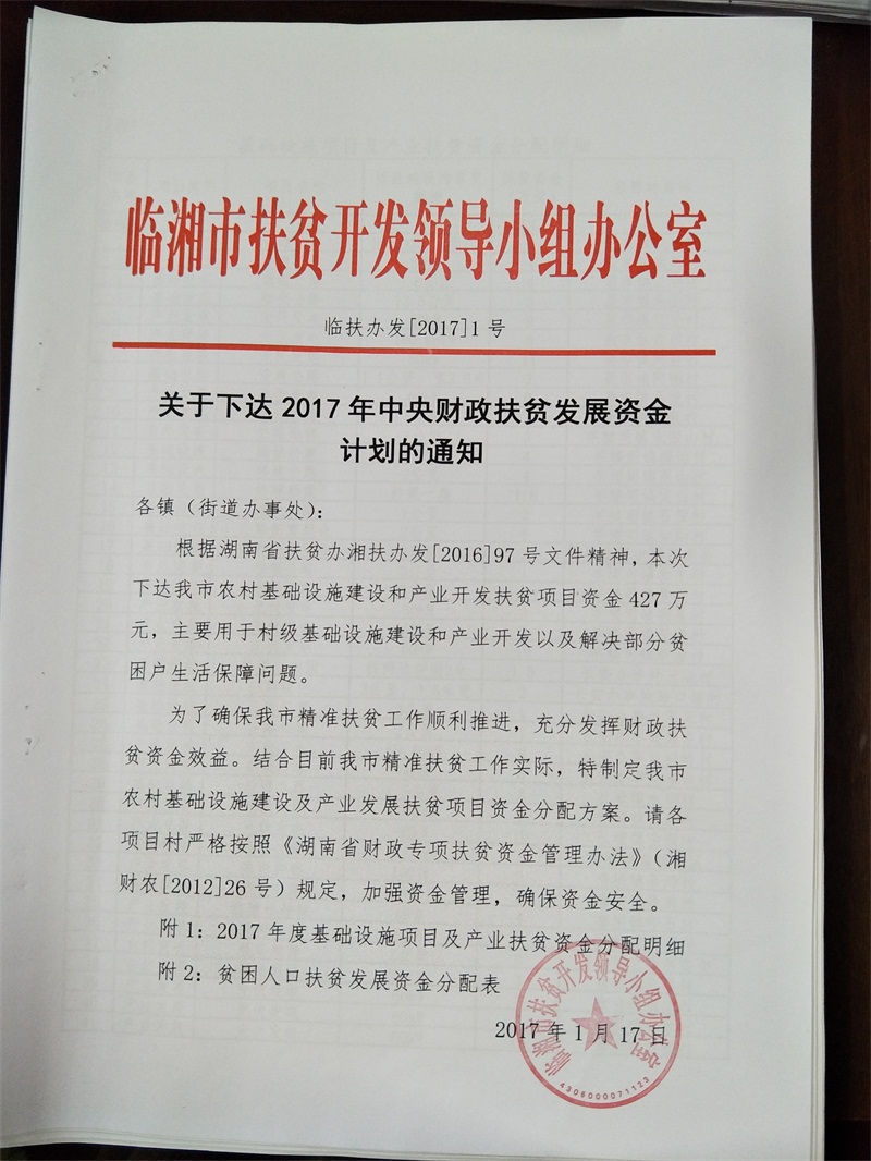 关于下达2017年中央财政扶贫发展资金计划的通知