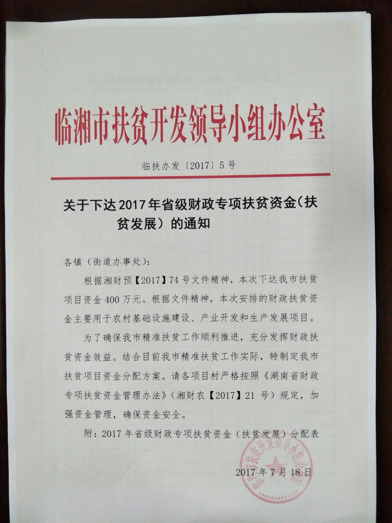 关于下达2017年省级财政专项扶贫资金(扶贫发展)的通知