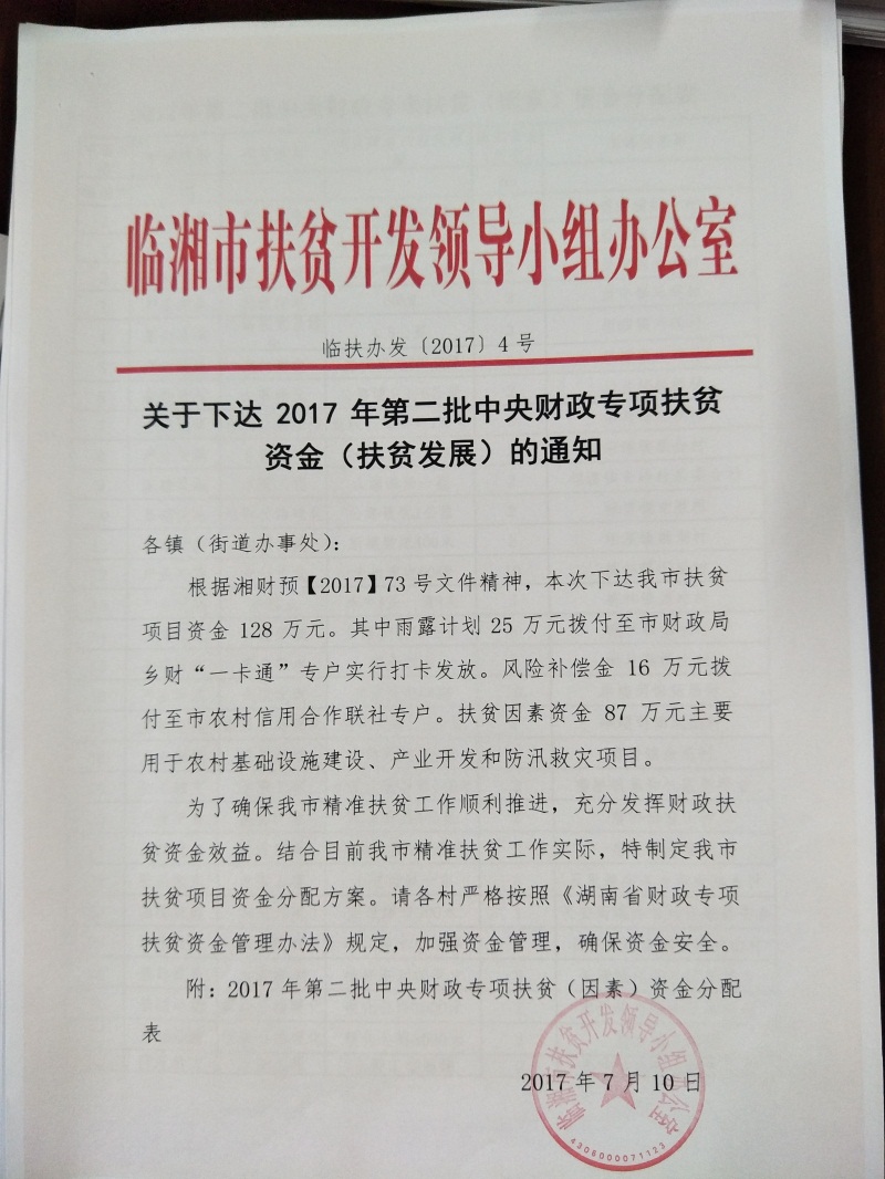 关于下达2017年第二批中央财政专项扶贫资金(扶贫发展)的通知