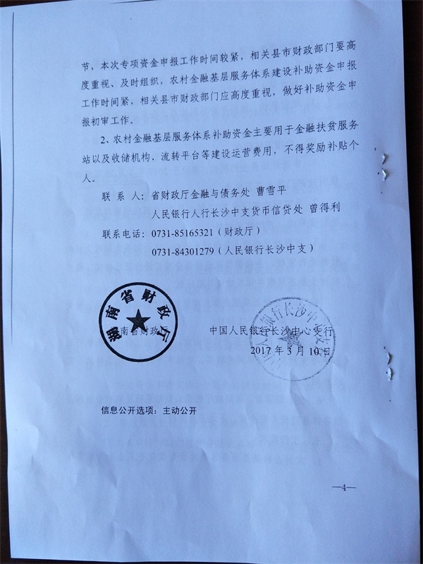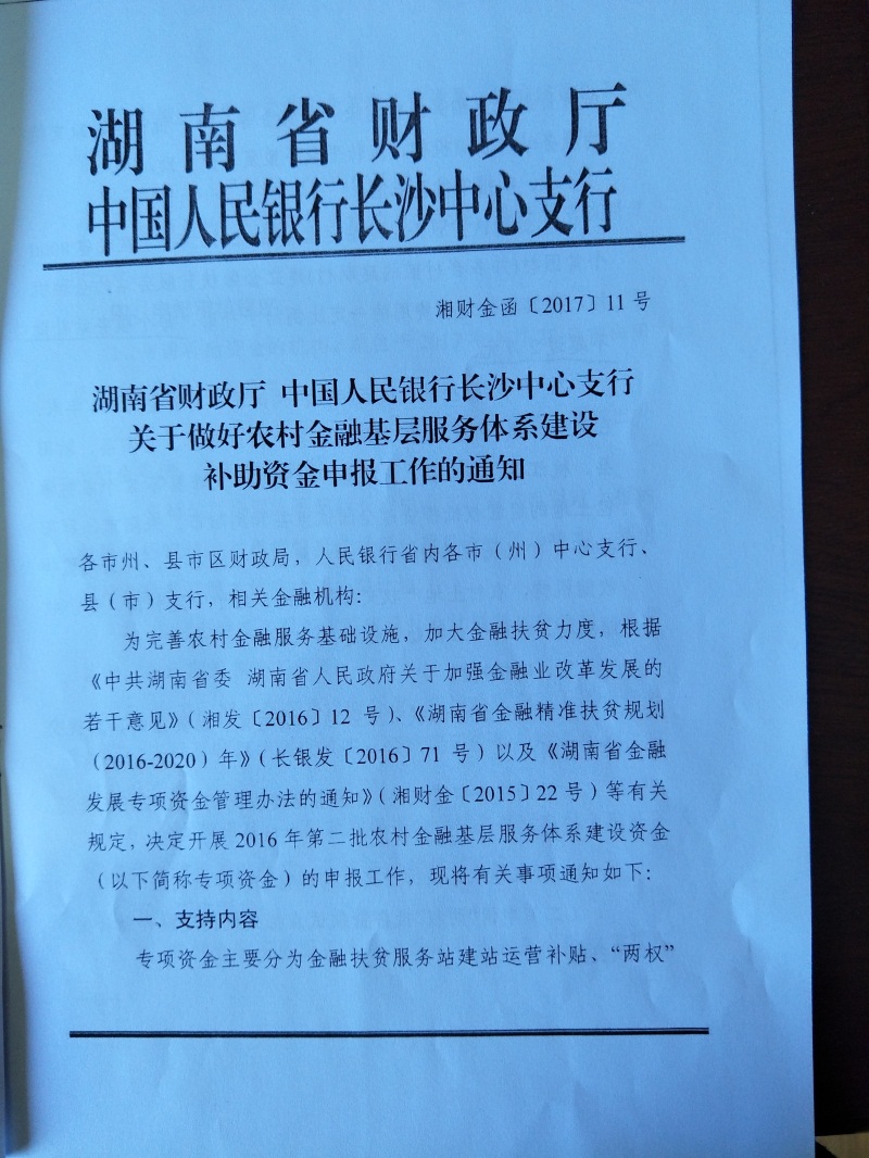 湖南省财政厅中国人民银行长沙中心支行关于做好农村金融基层服务体系建设补助资金申报工作的通知