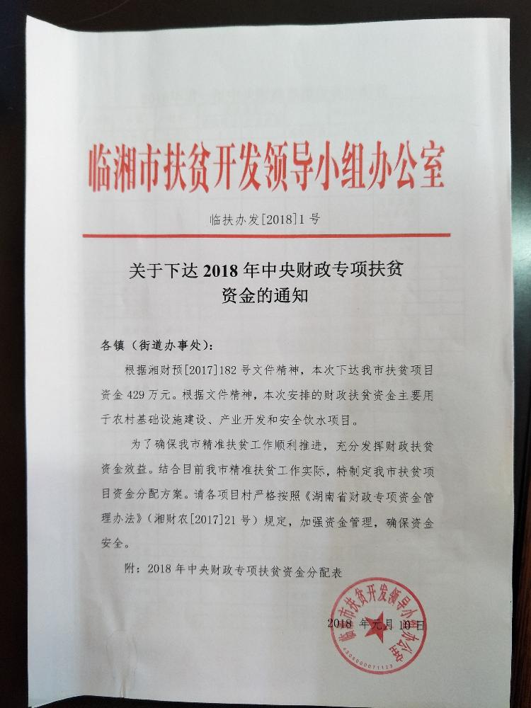 预拨中央第一批财政专项扶贫资金