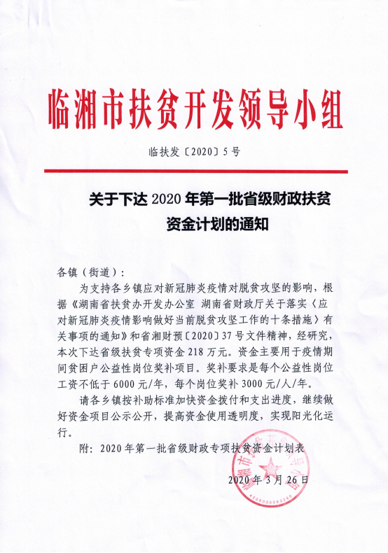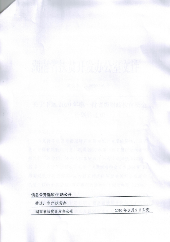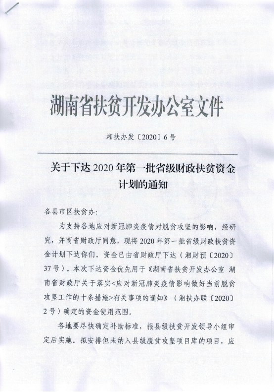 关于下达2020年第一批省级财政扶贫资金计划的通知