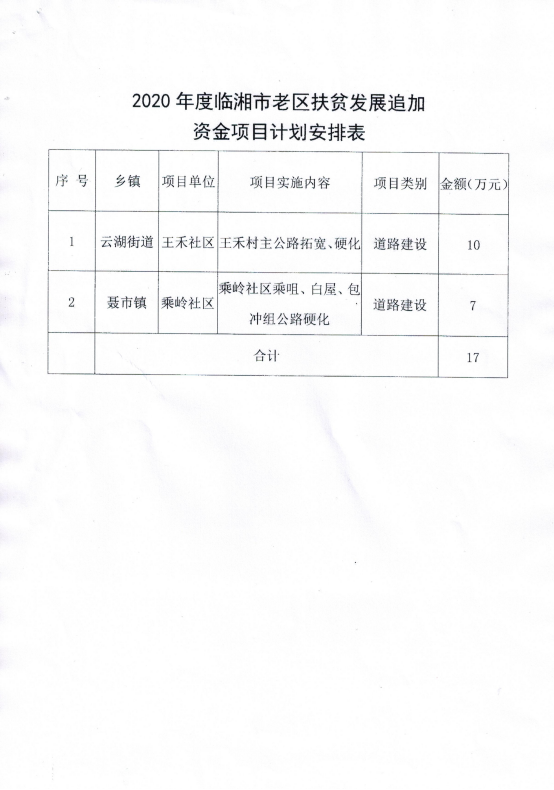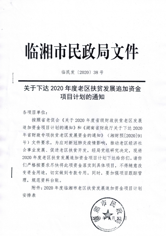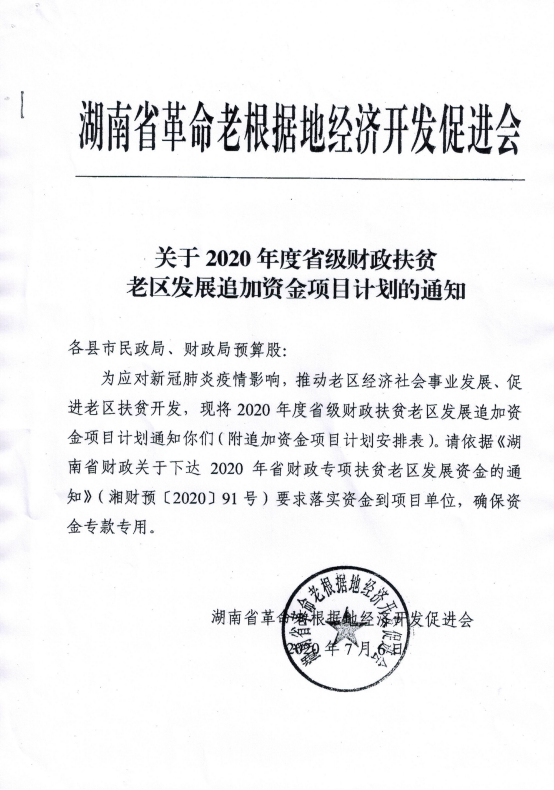 关于下达2020年度老区扶贫资金发展追加资金项目计划的通知