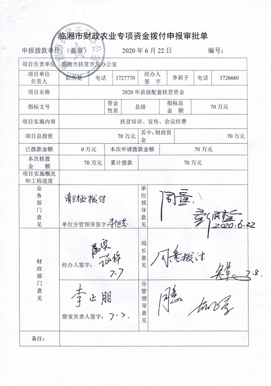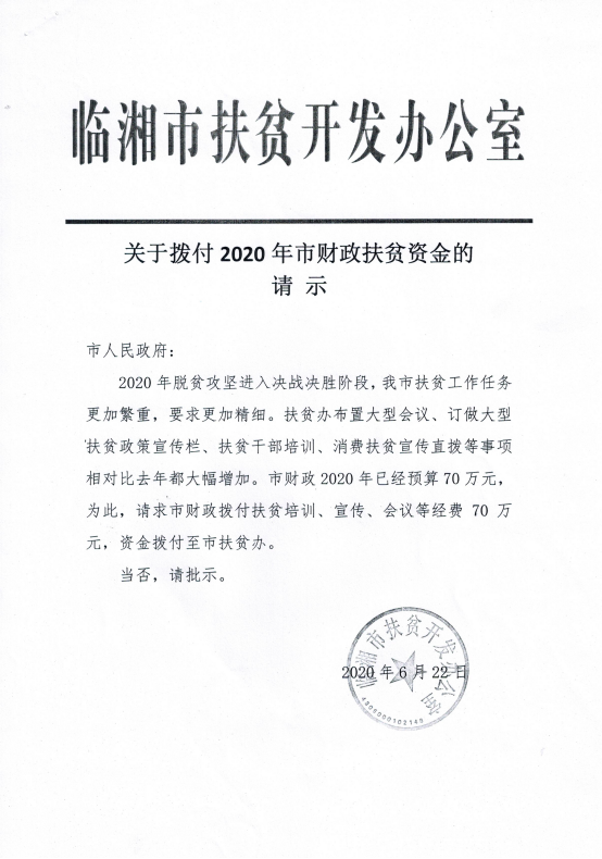 2020年临湘市扶贫配套资金4