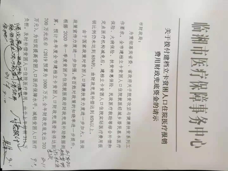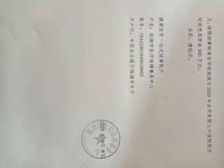 临湘市2020年县级扶贫资金(健康扶贫3)