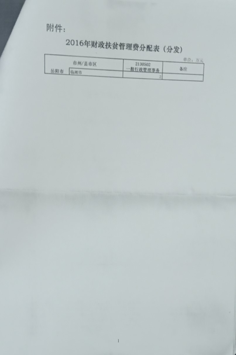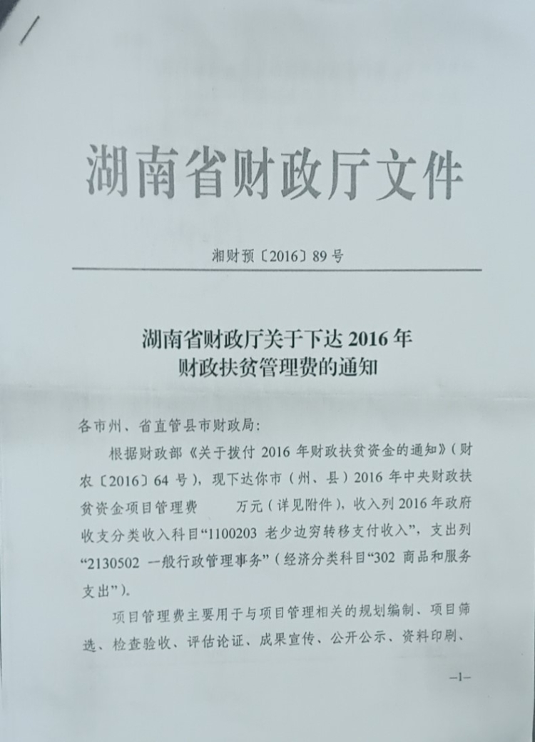 湖南省财政厅关于下达2016年财政扶贫资金管理费的通知