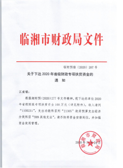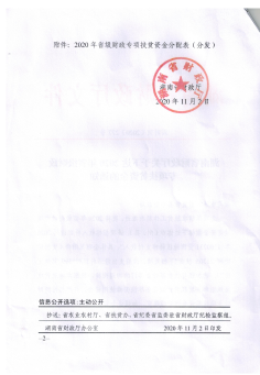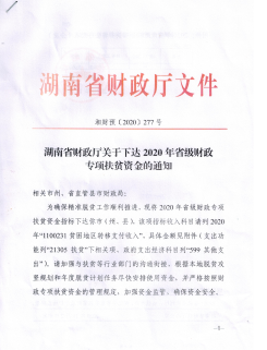 湖南省财政厅关于下达2020你那省级财政专项扶贫资金的通知(湘财预2020]277号)