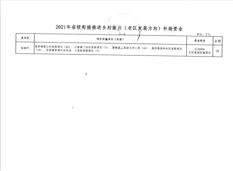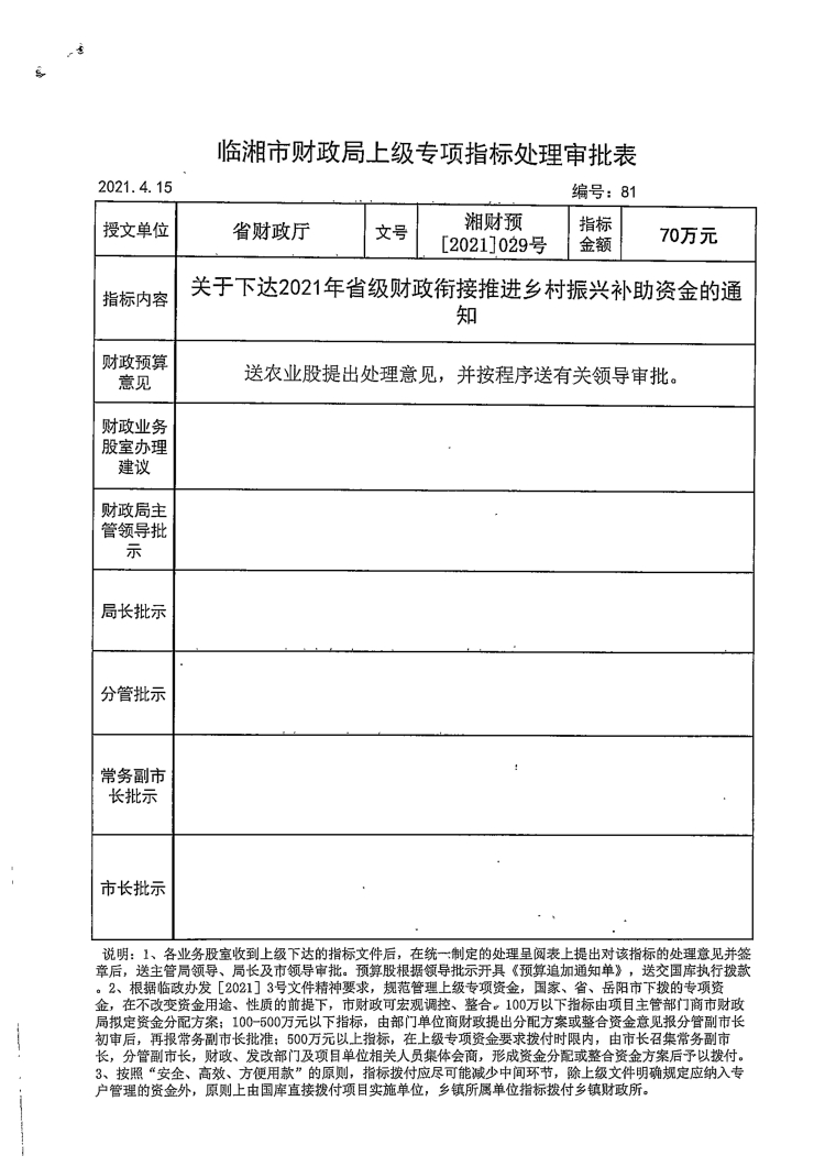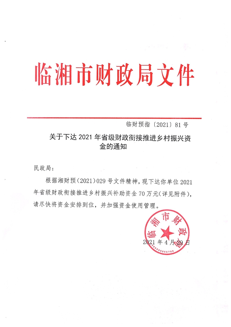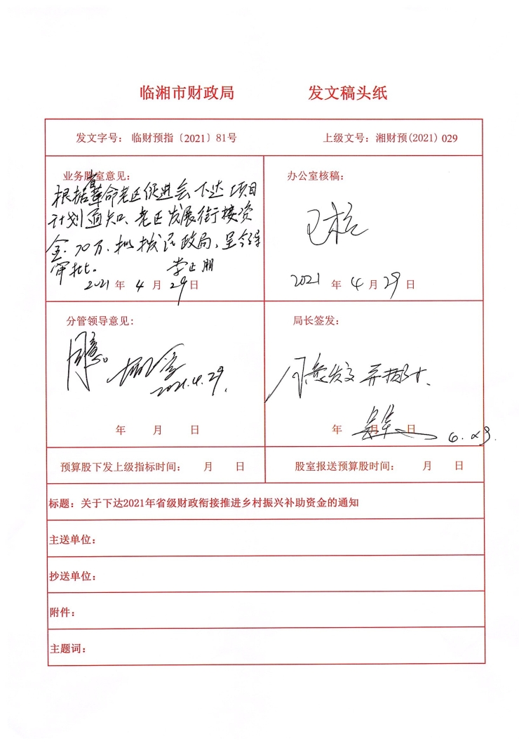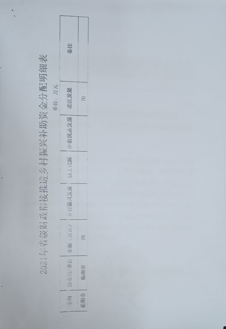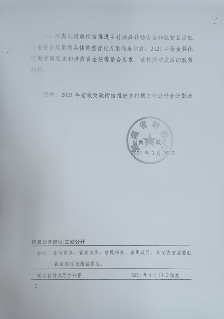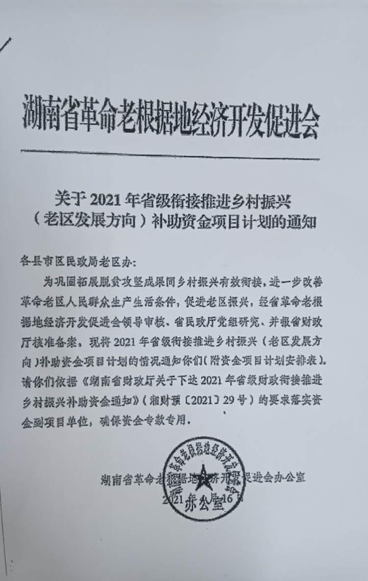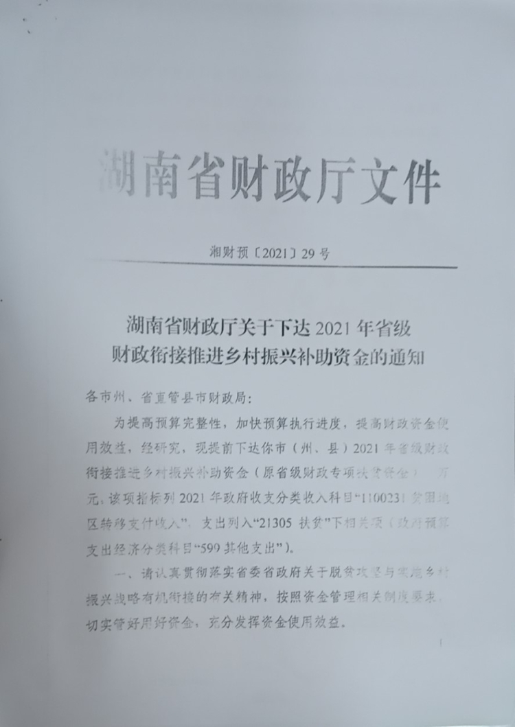 关于下达2021年省级财政衔接推进乡村振兴补助资金的通知(湘财预[2021]号老区资金)