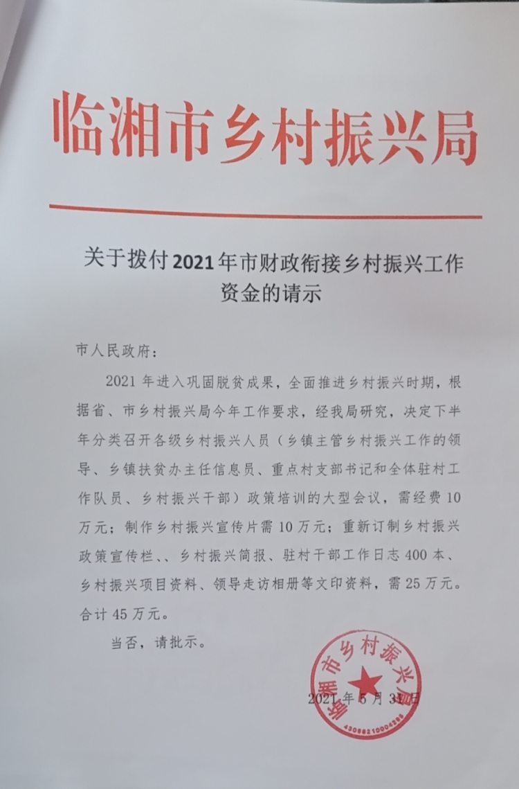 2021年县级配套衔接乡村振兴资金5