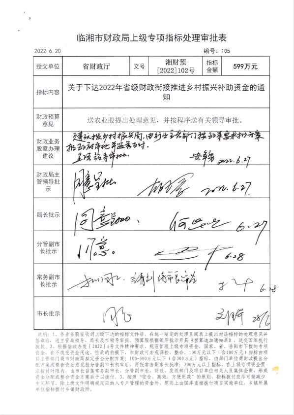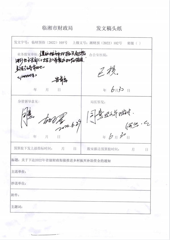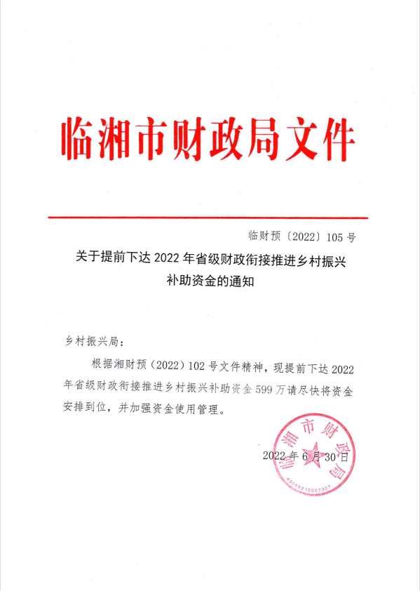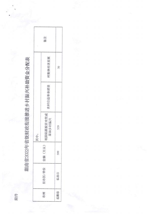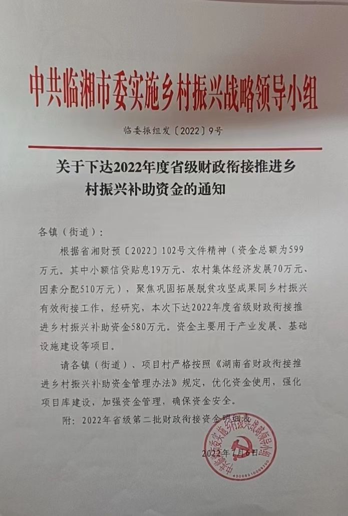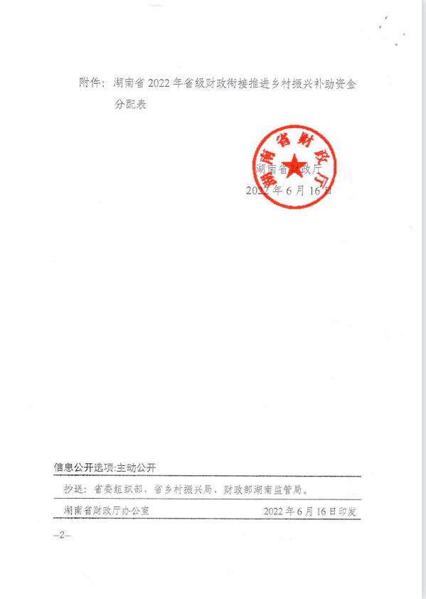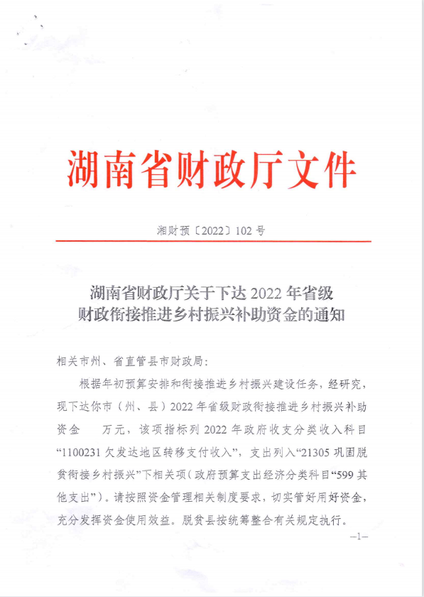湖南省财政厅关于下达2022年省级财政衔接推进乡村振兴补助资金的通知(湘财预【2022】102号)
