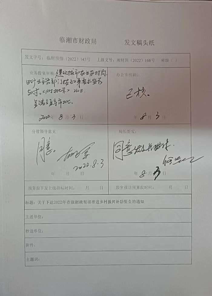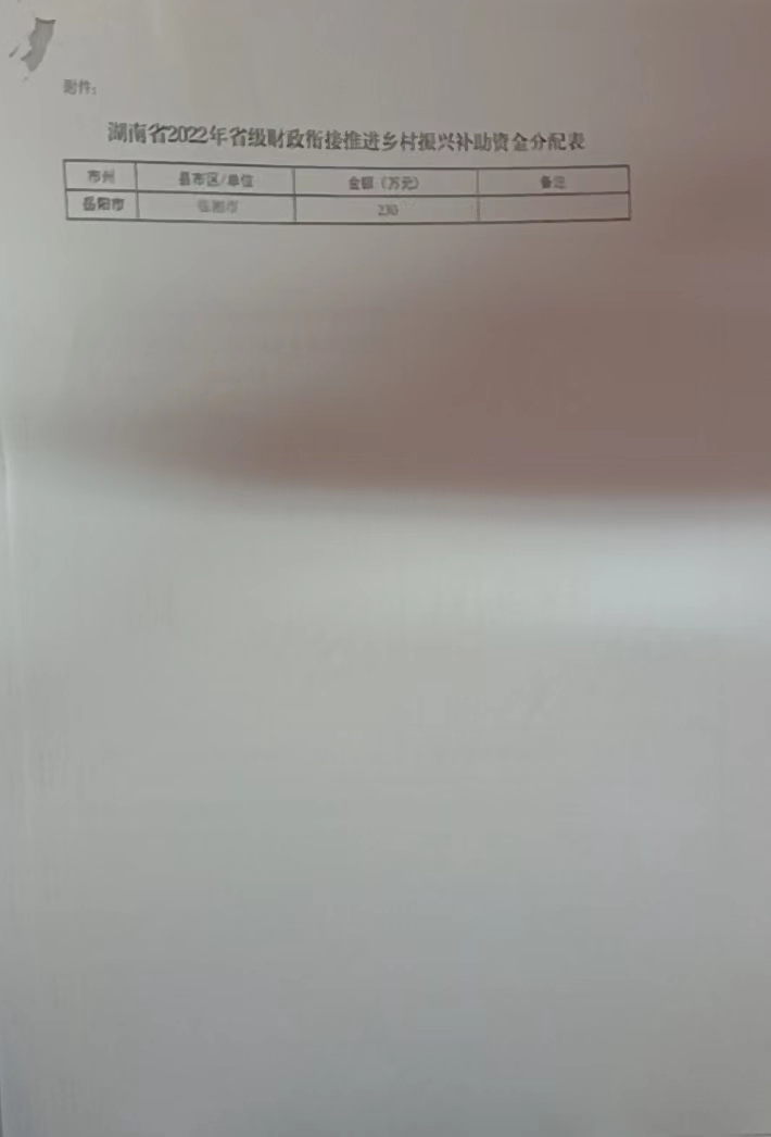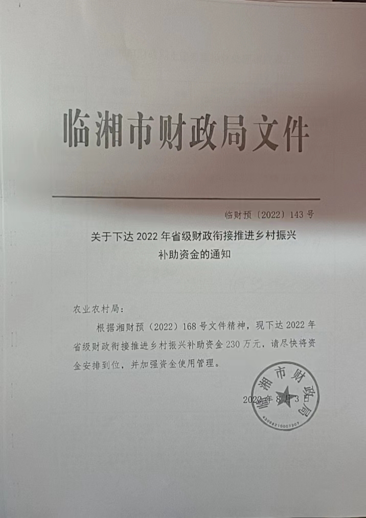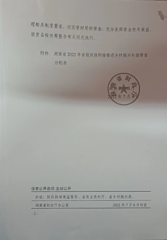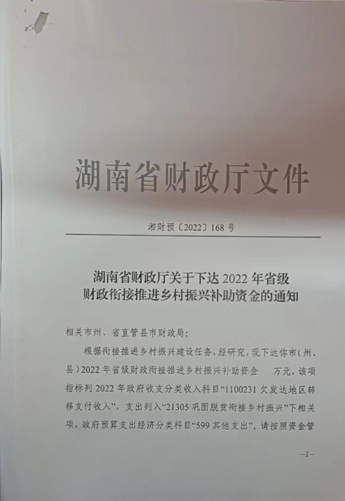 关于下达2022年省级财政衔接推进乡村振兴补助资金的通知(湘财预[2022]168号)