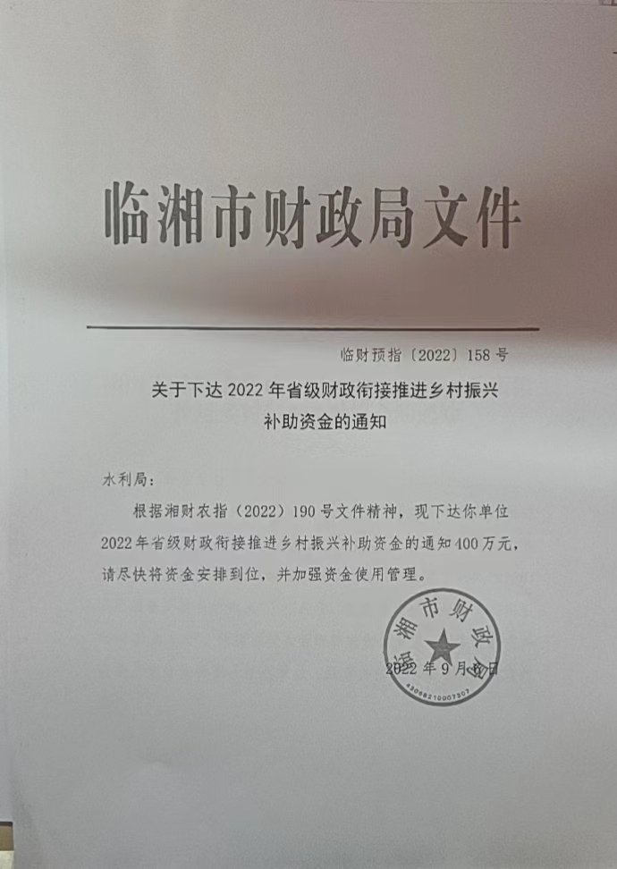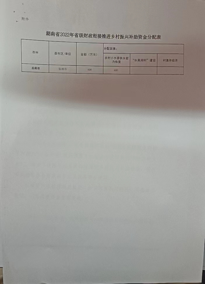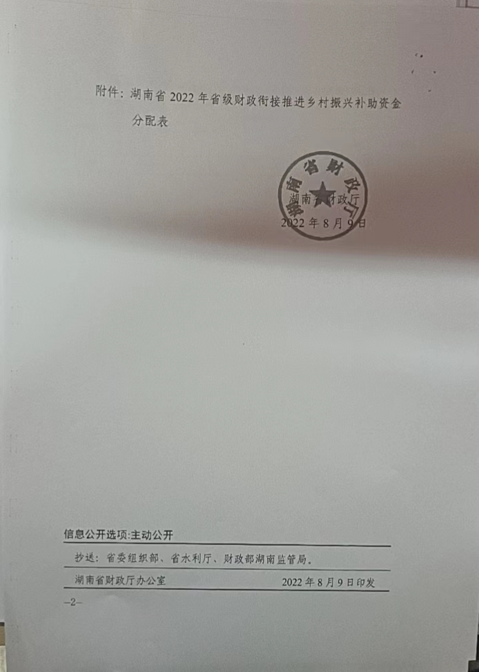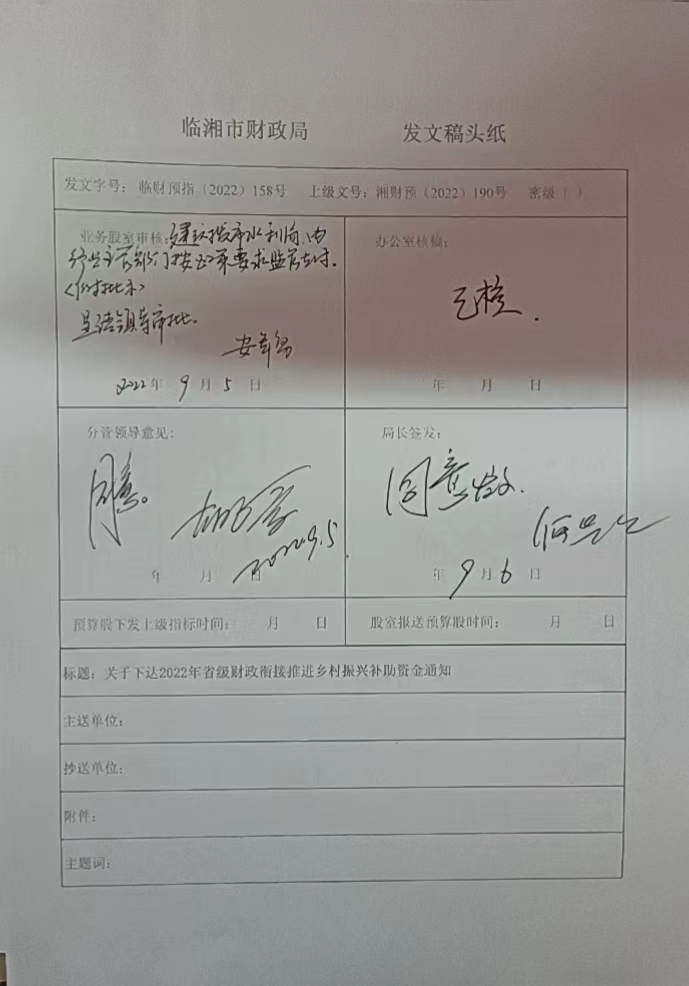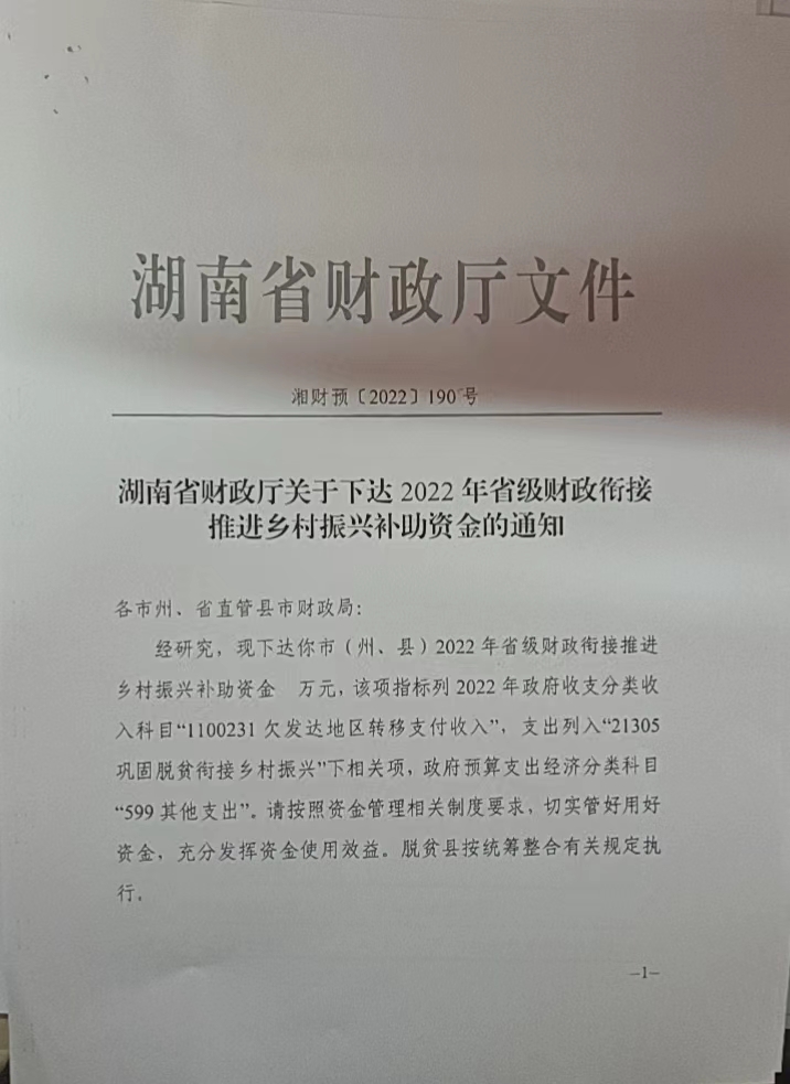 关于下达2022年省级财政衔接推进乡村振兴补助资金的通知(湘财预[2022]190号)