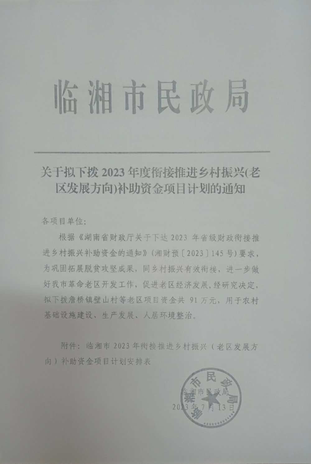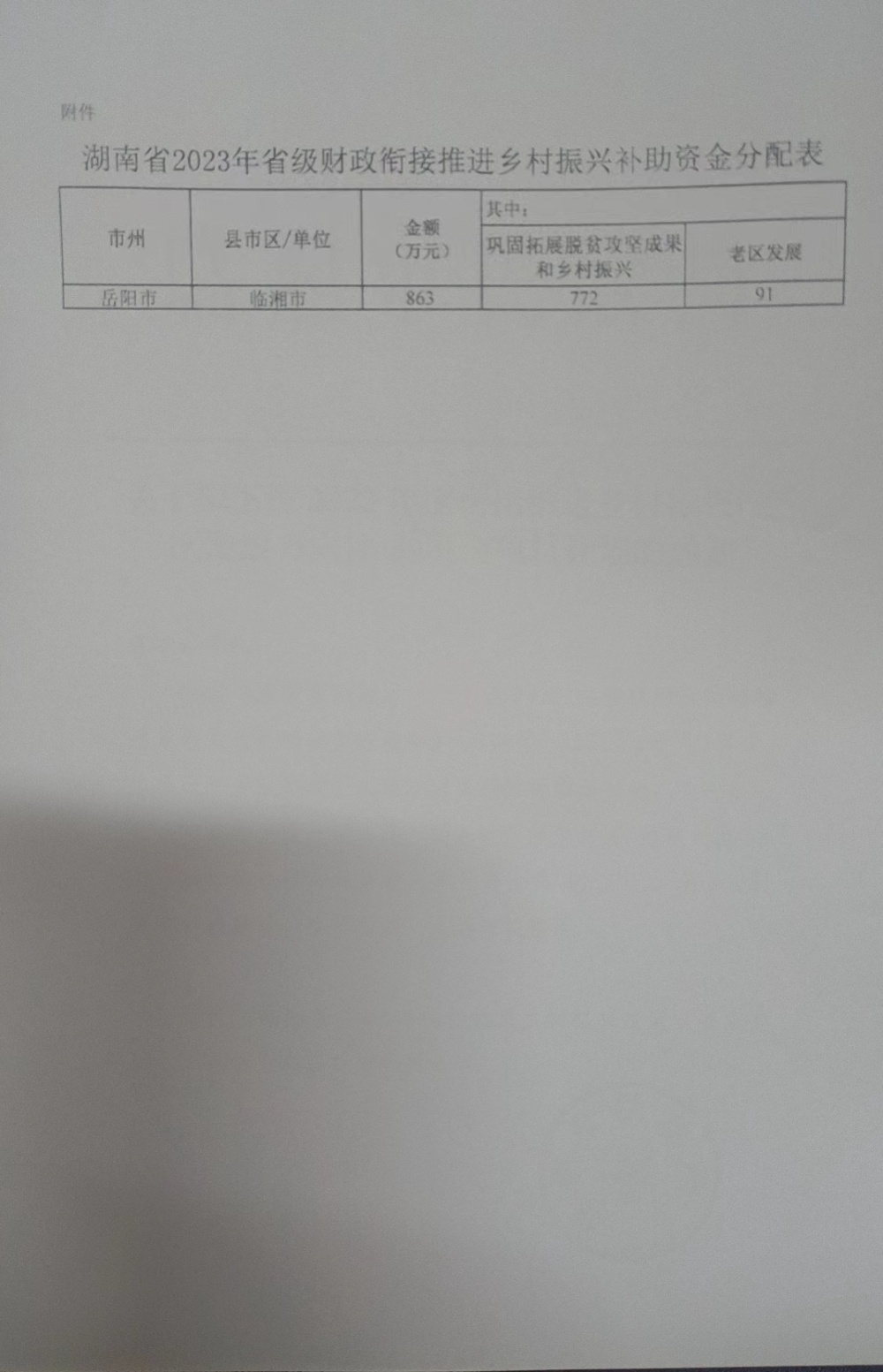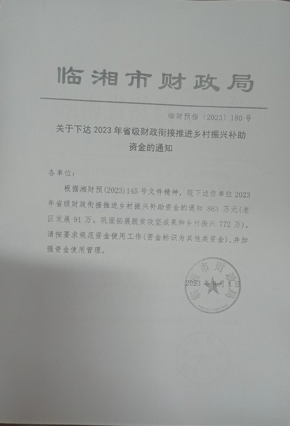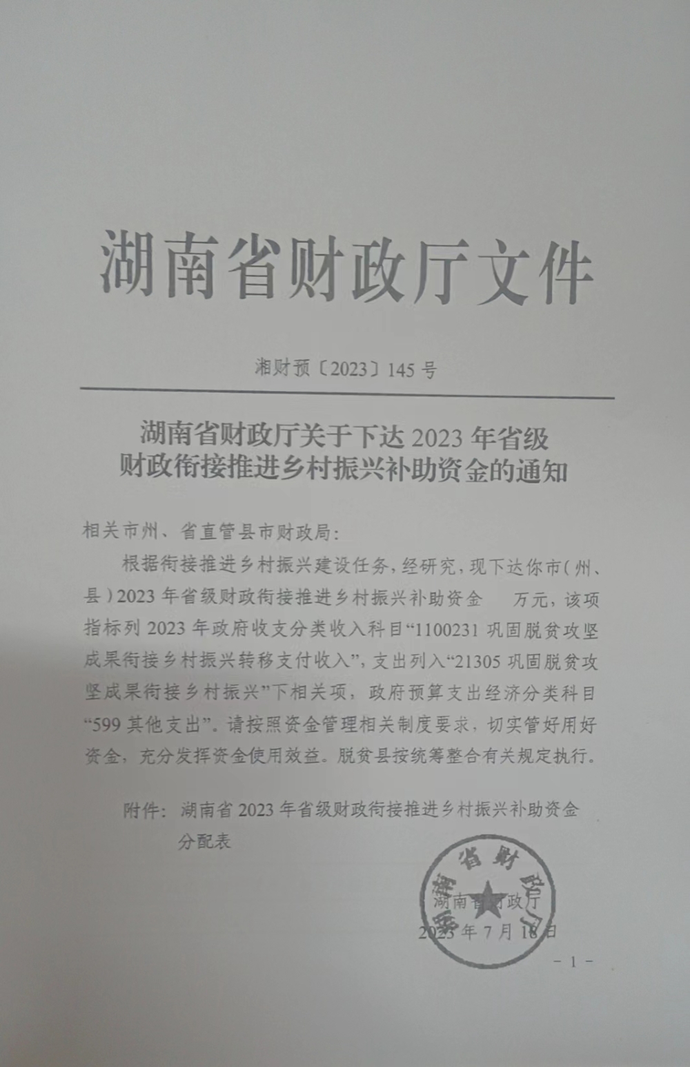 关于下达2023年省级衔接推进乡村振兴补助资金的通知(湘财预[2023]145号)