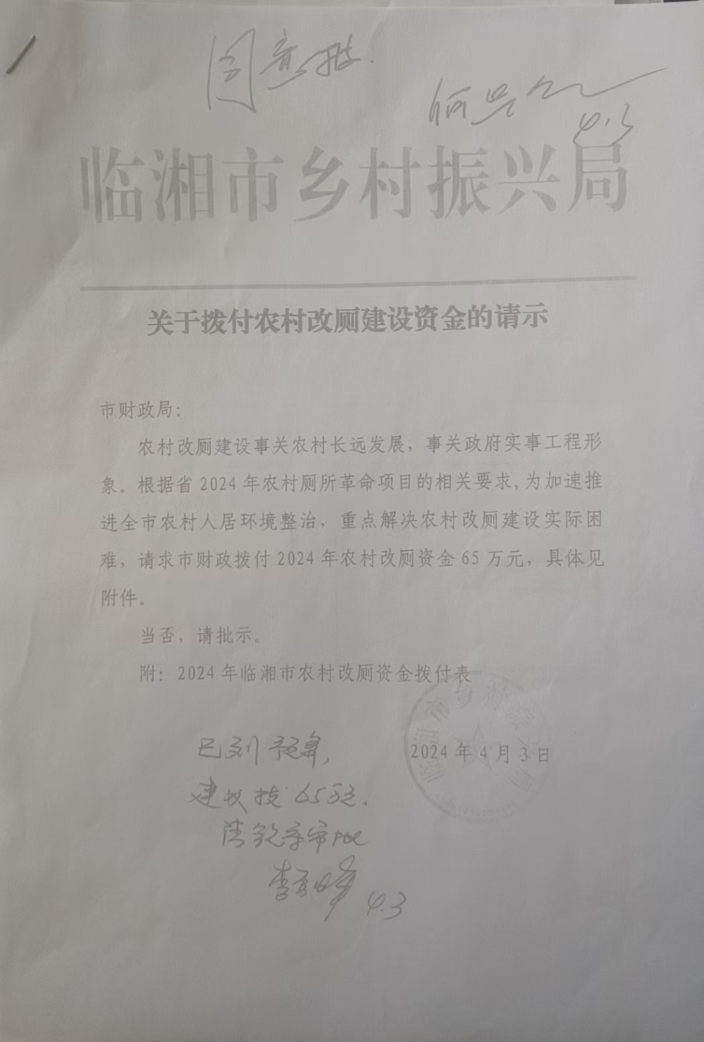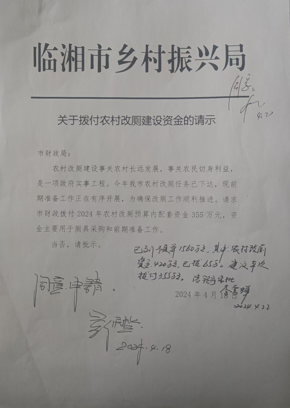 关于拨付农村改厕建设资金的请示4