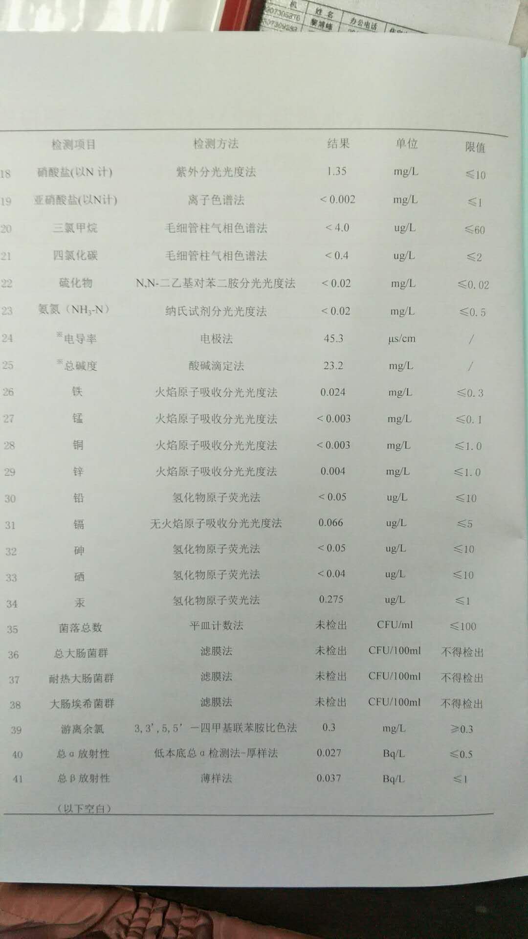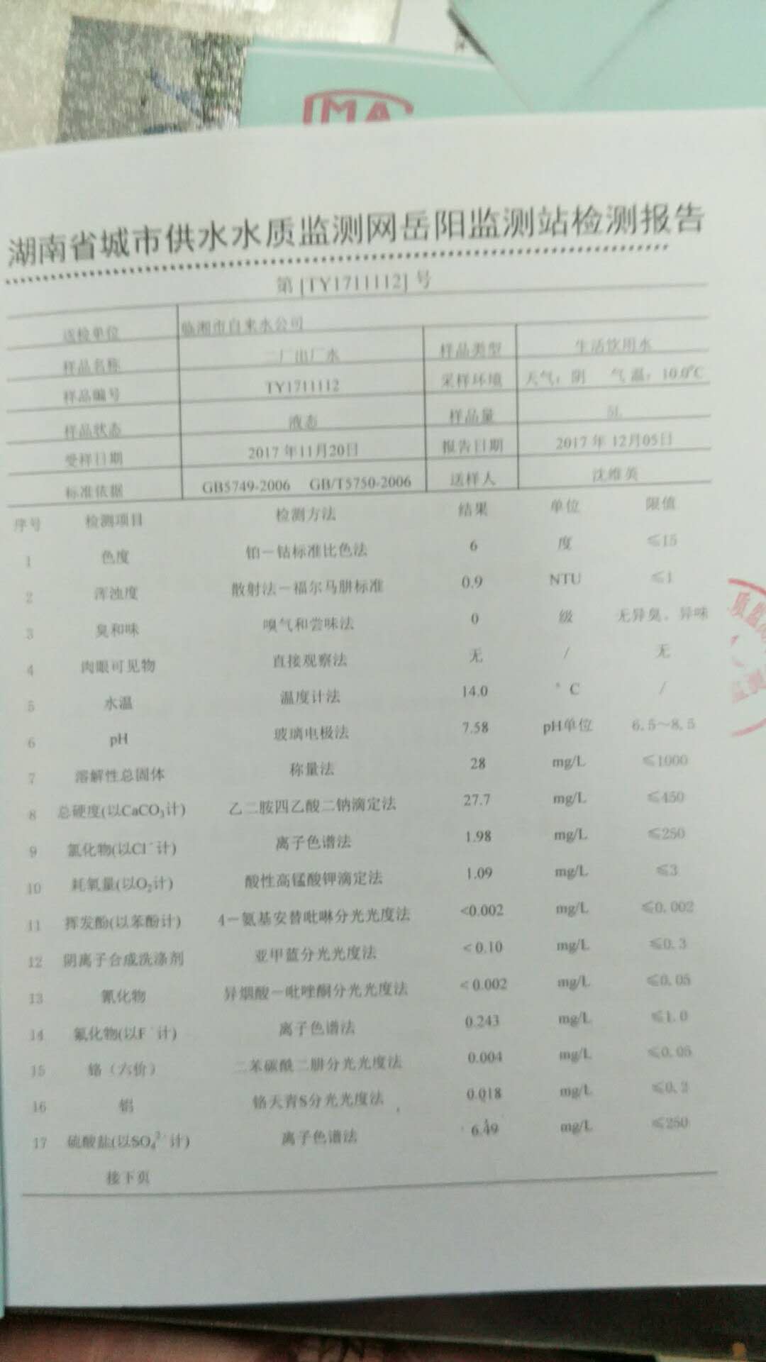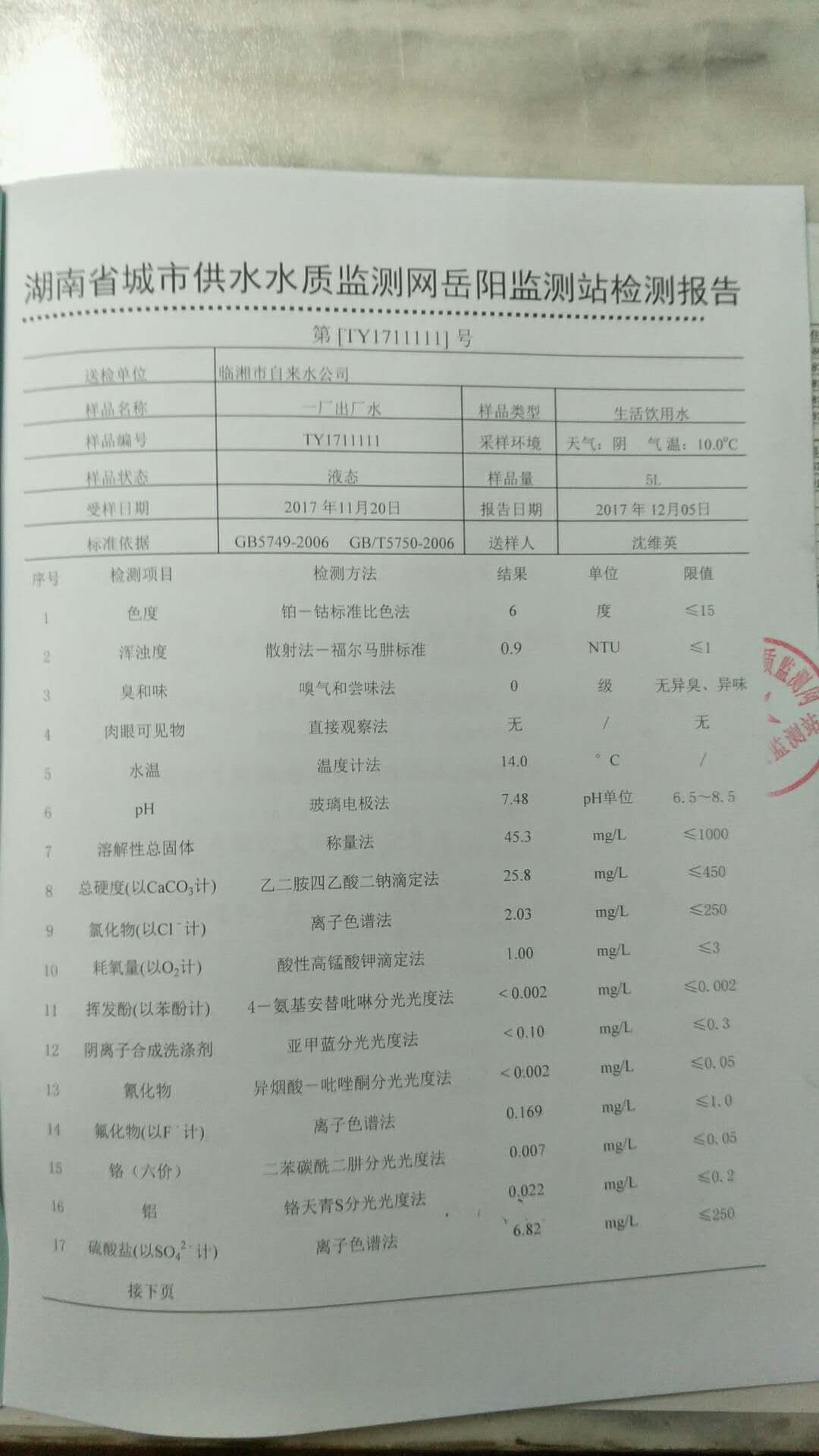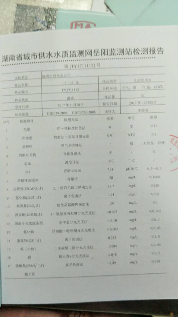 2017年11月水质报告