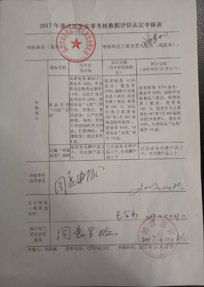 2017年重点民生实事考核数据评估认定申报表
