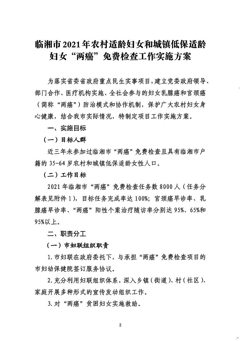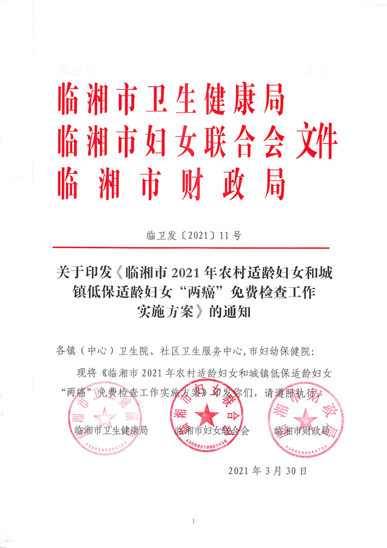 关于印发《临湘市2021年农村适龄和城镇低保适龄妇女“两癌”免费检查实施方案》的通知