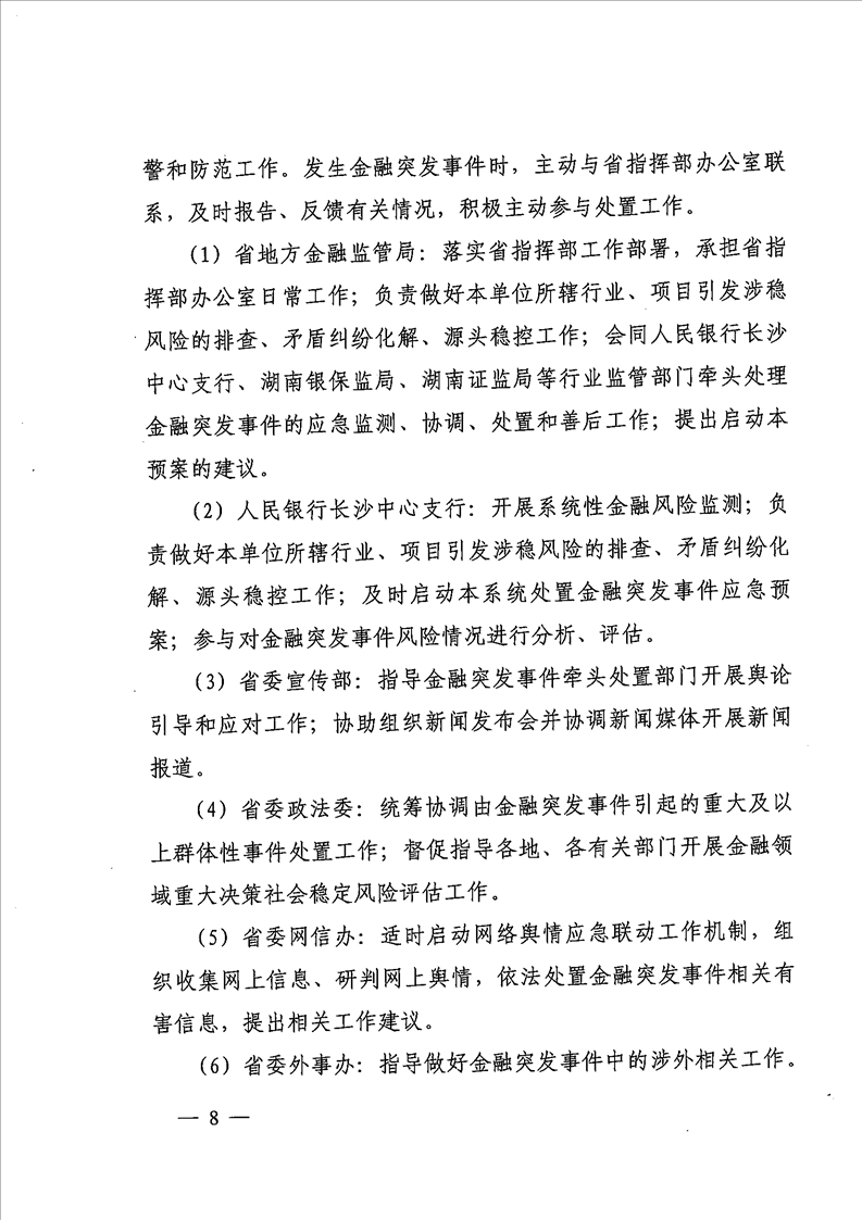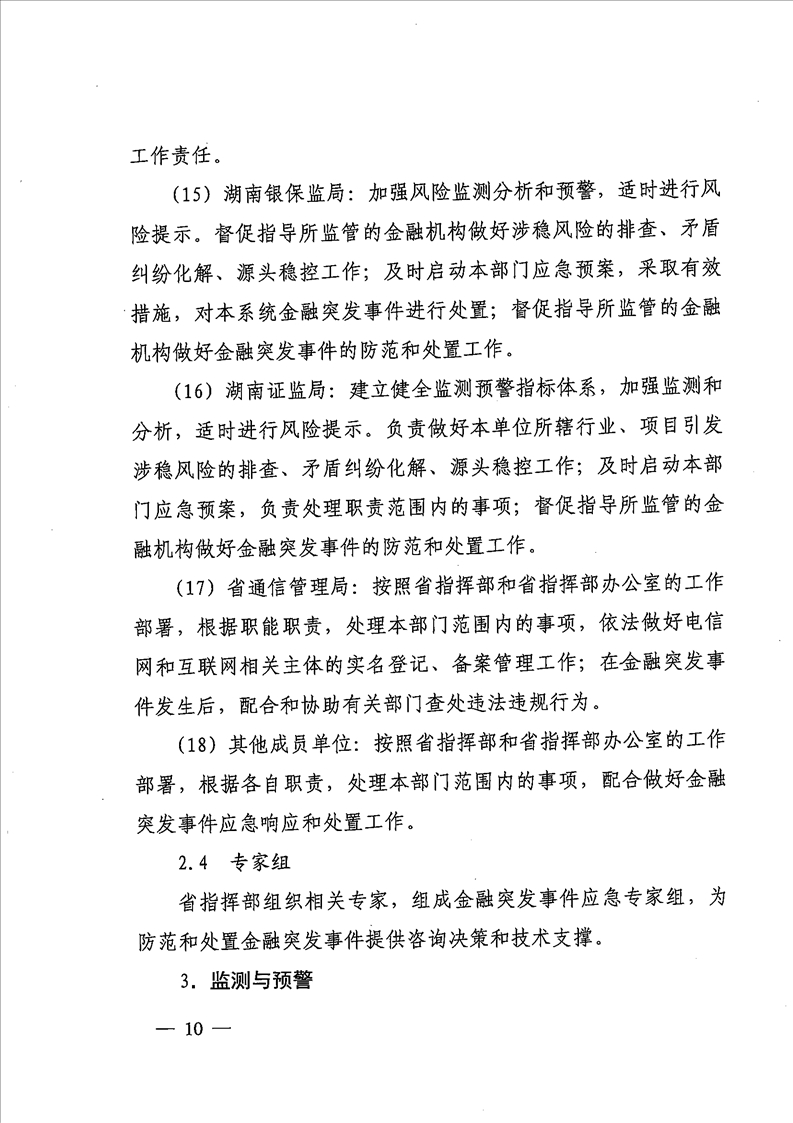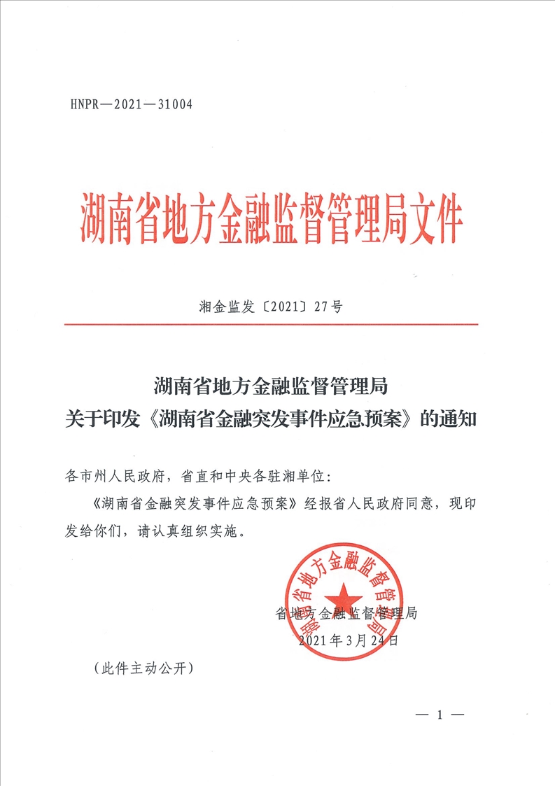 湖南省地方金融监督管理局关于印发《湖南省金融突发事件应急预案》的通知