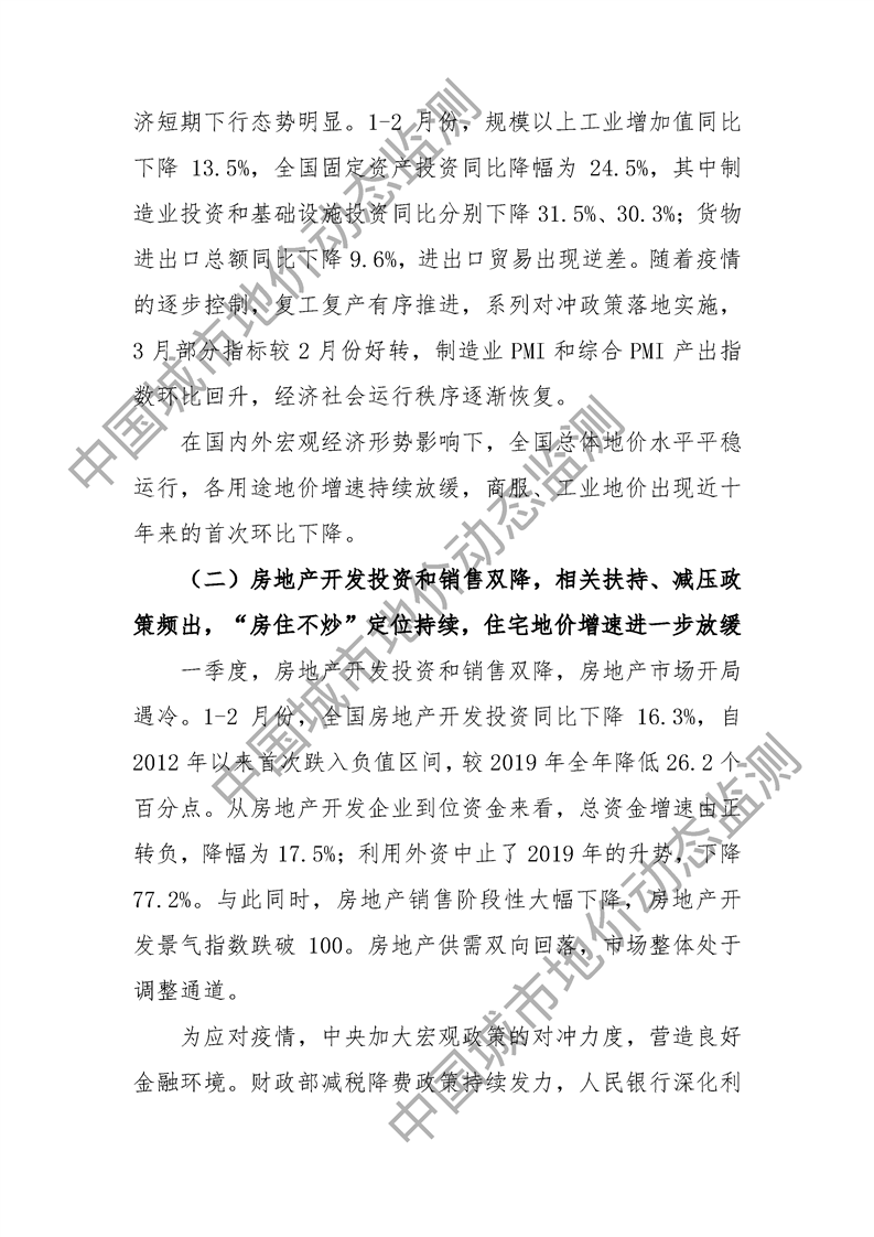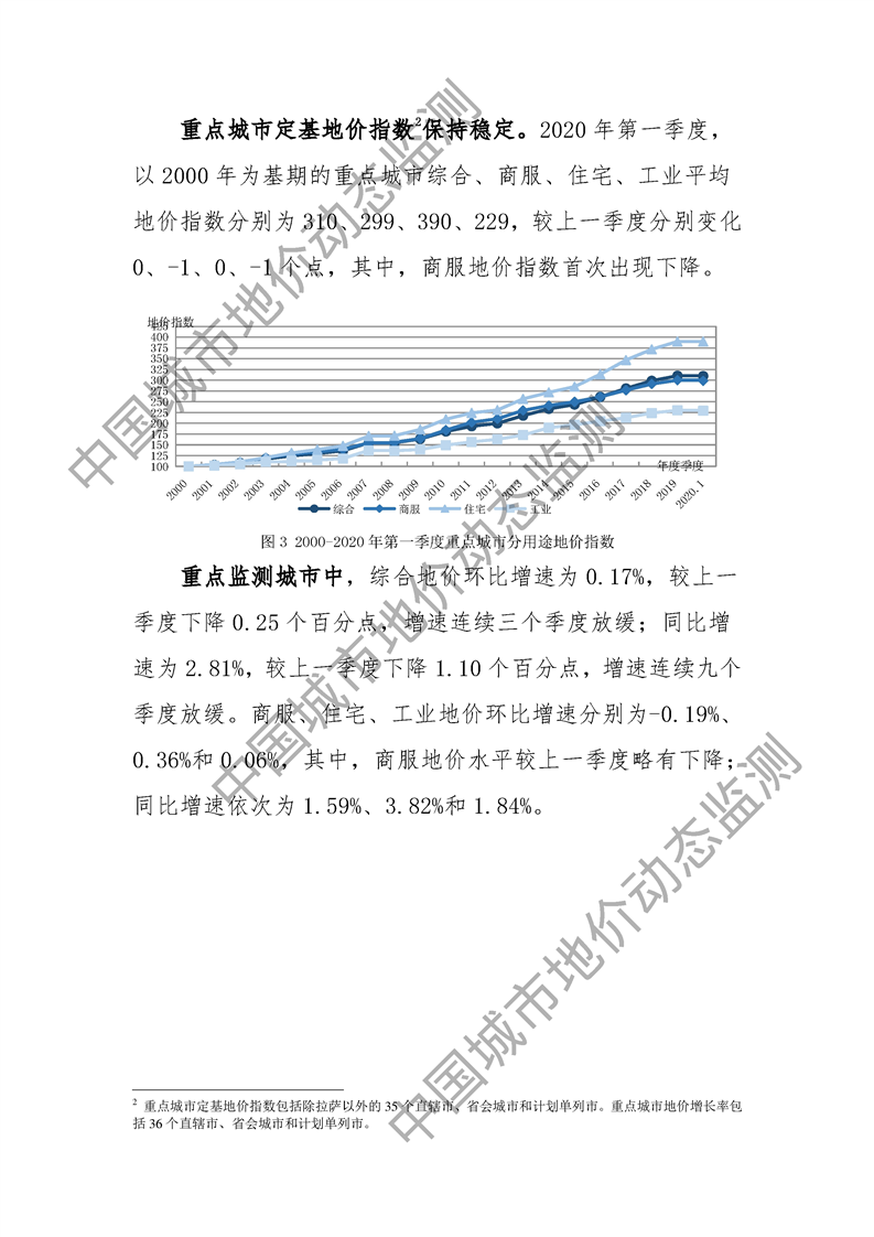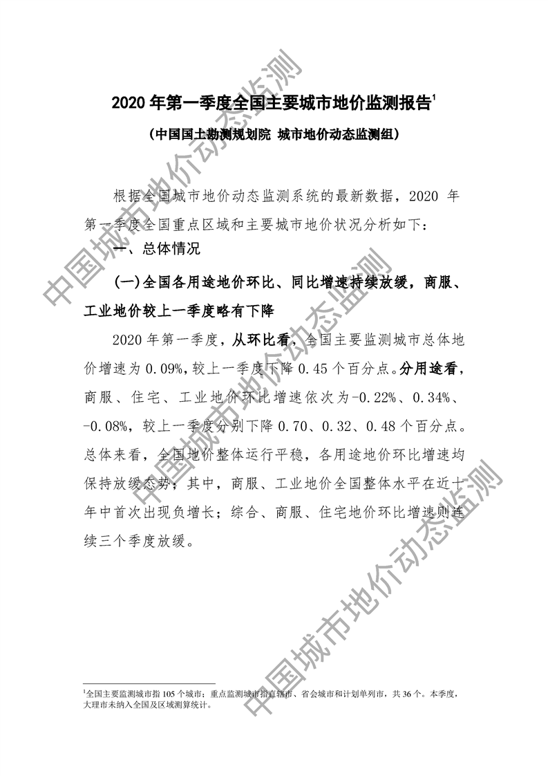 2020年第一季度全国主要城市地价监测报告