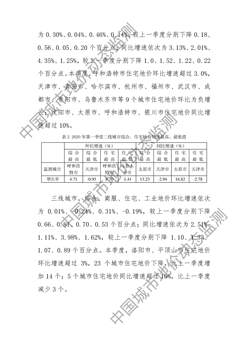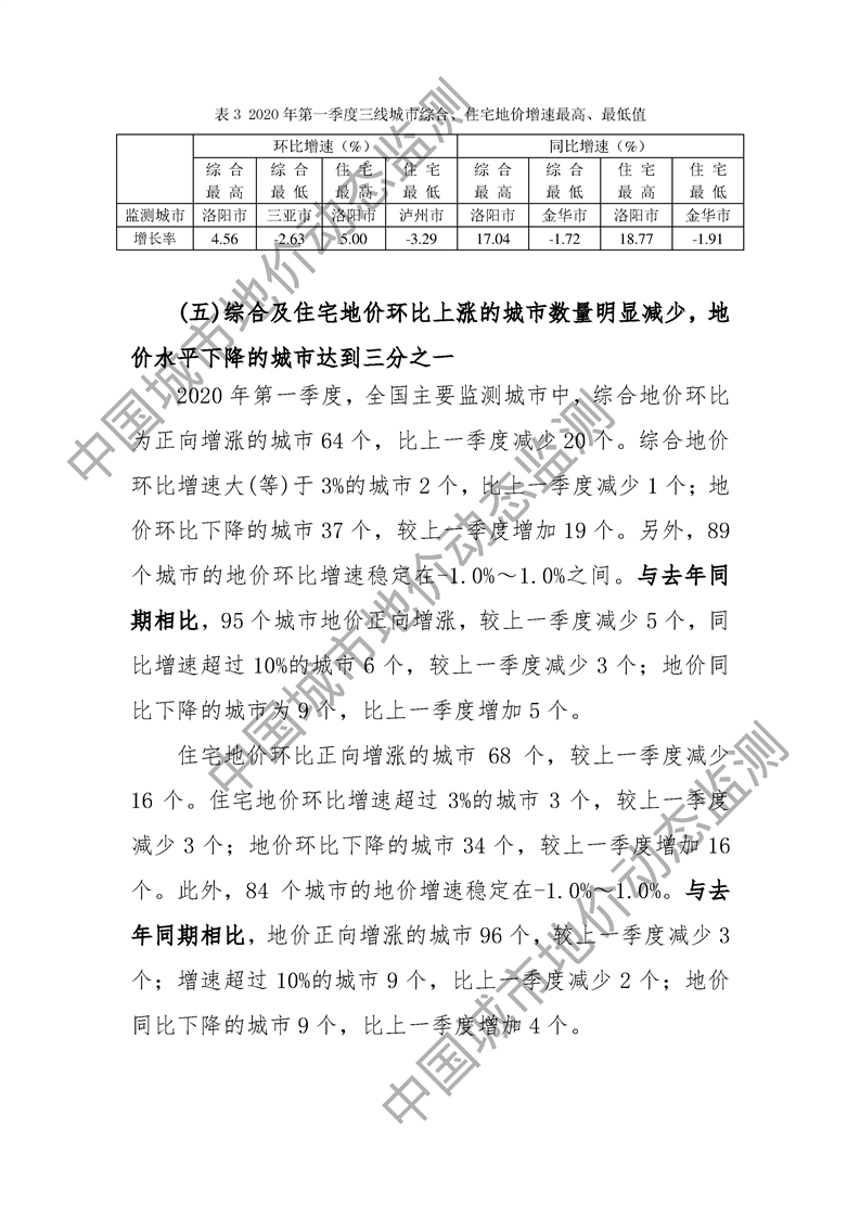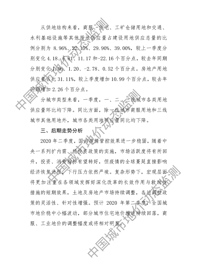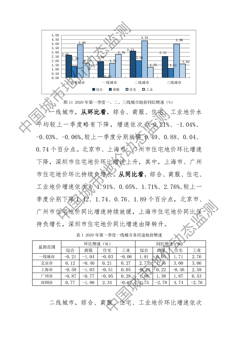 2020年第一季度全国主要城市地价监测报告