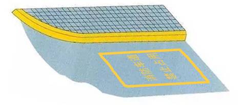 (注:标线为黄色网状实线,外边框线宽20厘米,内部网格线宽10厘米,内部网格线与外边框夹角45度,标线中央位置沿行车方向标注内容为“消防车道 禁止占用”的警示字样)