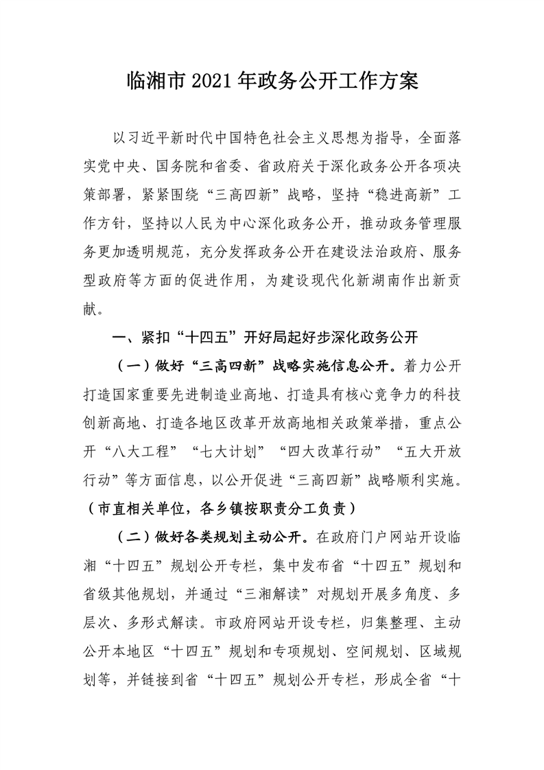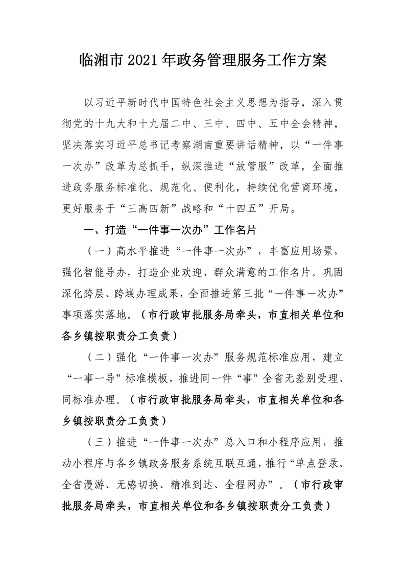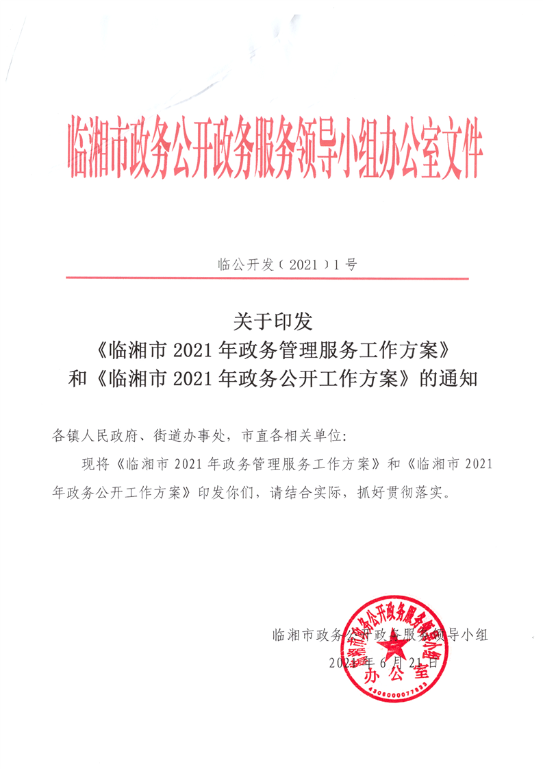 关于印发《临湘市2021政务管理服务工作方案》和《临湘市2021政务公开工作方案》的通知