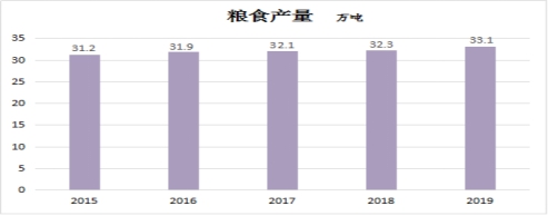 主要农产品产量稳定增长。全年粮食总产量33.1万吨,增长2.5%;粮油产量2.36万吨,增长10.3%;蔬菜产量23.4万吨,茶产量0.48万吨。