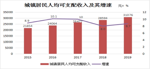 全年城镇居民人均可支配收入31076元,增长8.7%;农村居民人均可支配收入17305元,增长9.0%。