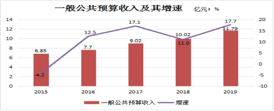 全年一般公共预算收入11.79亿元,同比增长17.7%;一般公共预算地方收入6.39亿元,同比增长17.7%。