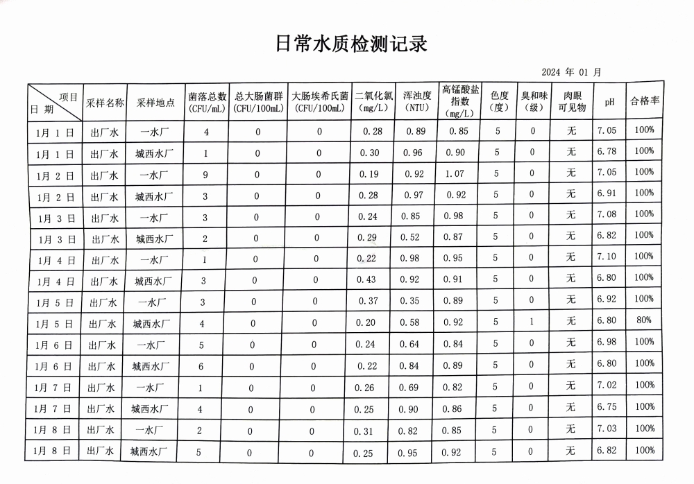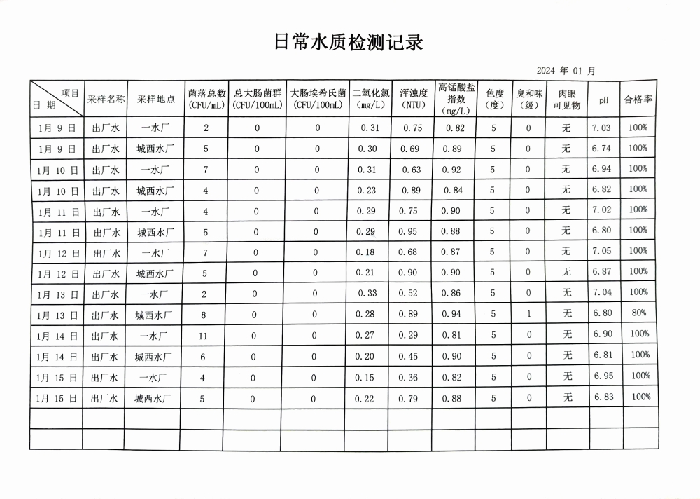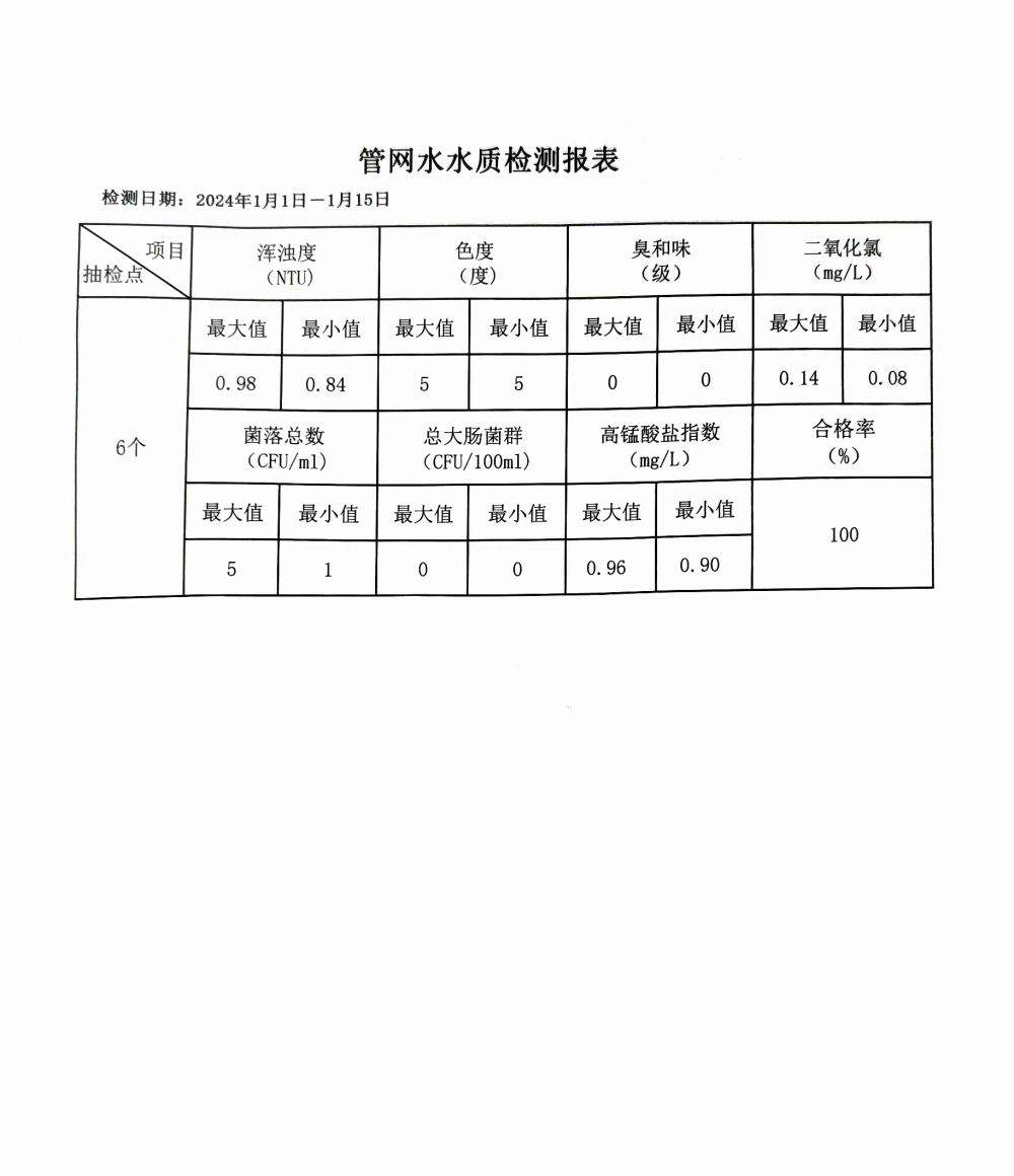 兴临自来水公司日检、半月检水质信息公开(1月上半月)