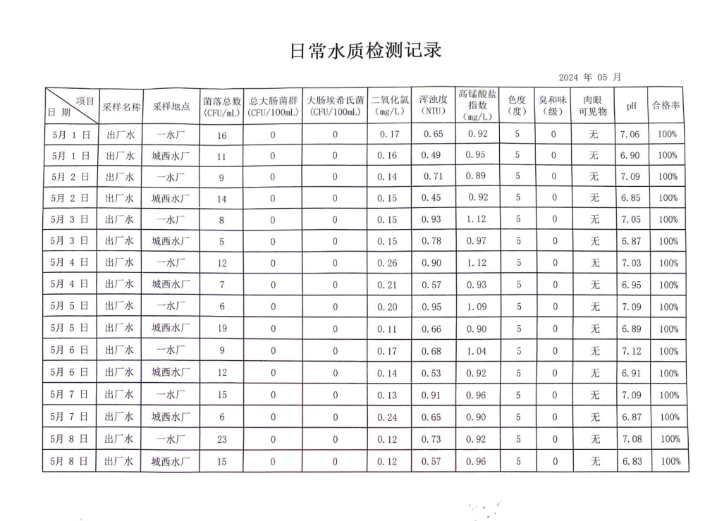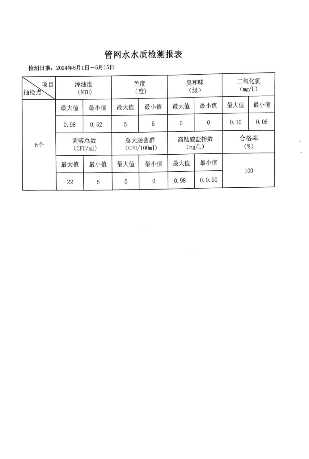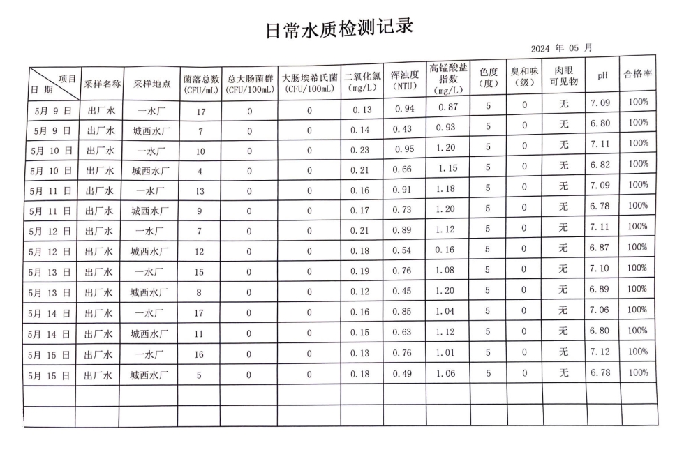 兴临自来水公司日检、半月检水质信息公开(5月上半月)
