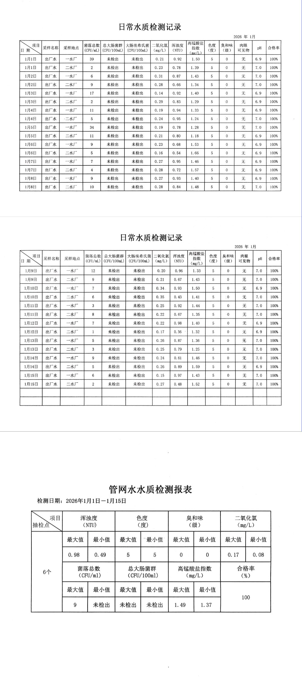 2026年1月上半月兴临自来水公司日检、半月检水质信息公开