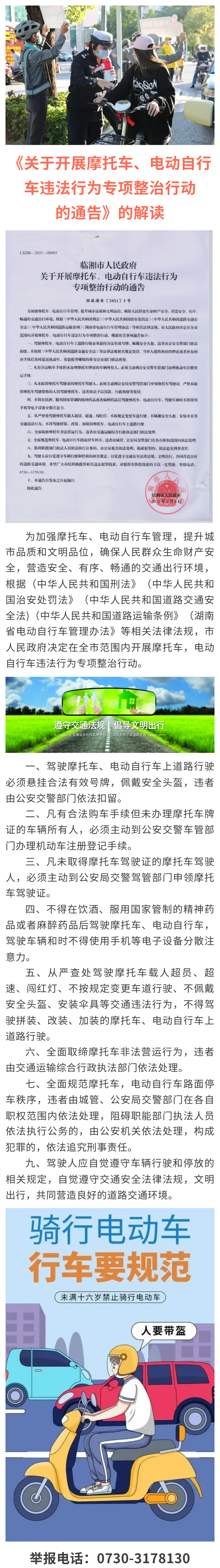 【图文解读】关于开展摩托车、电动自行车违法行为专项整治行动的通告