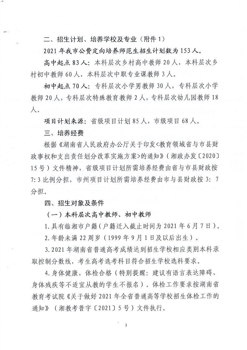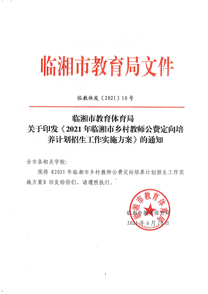 关于印发《2021年临湘市乡村教师公费定向培养计划招生工作实施方案》的通知