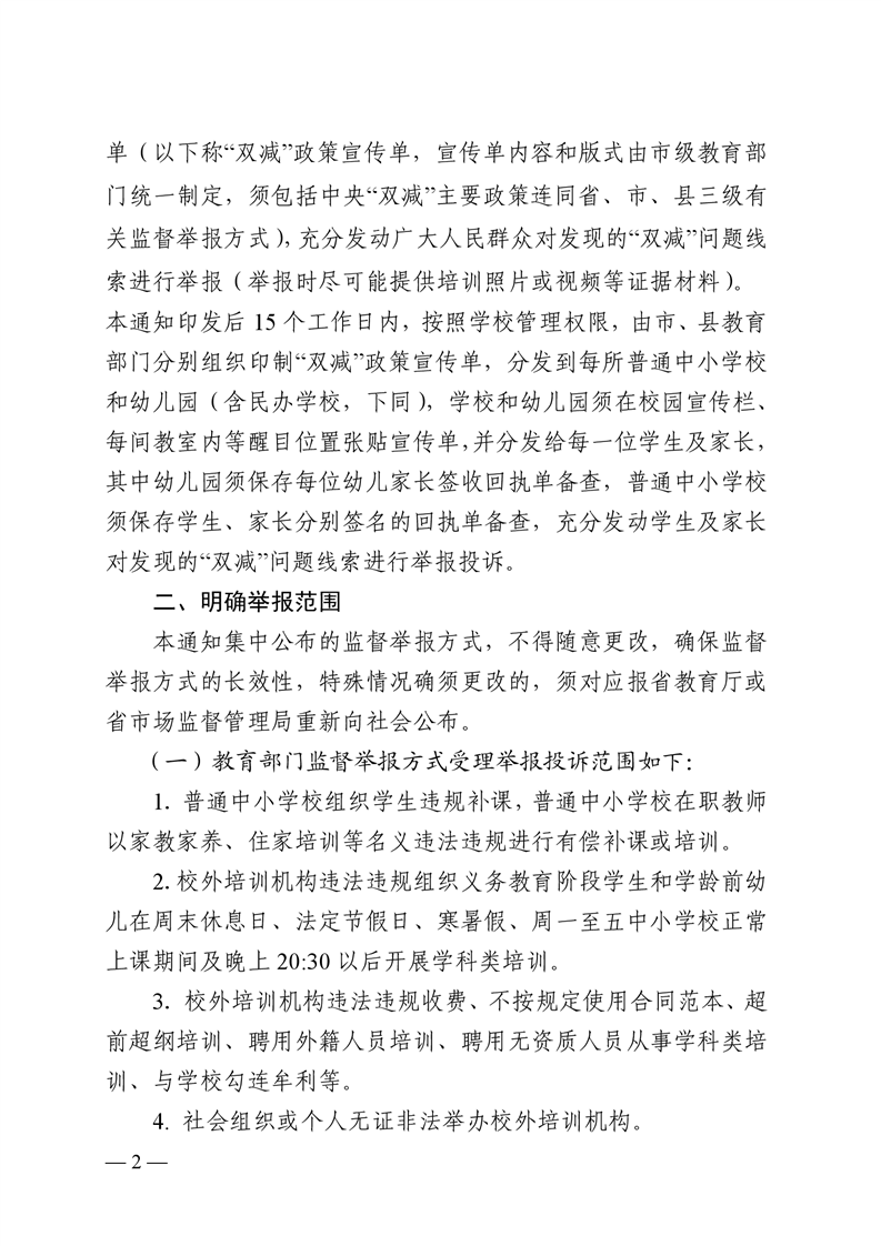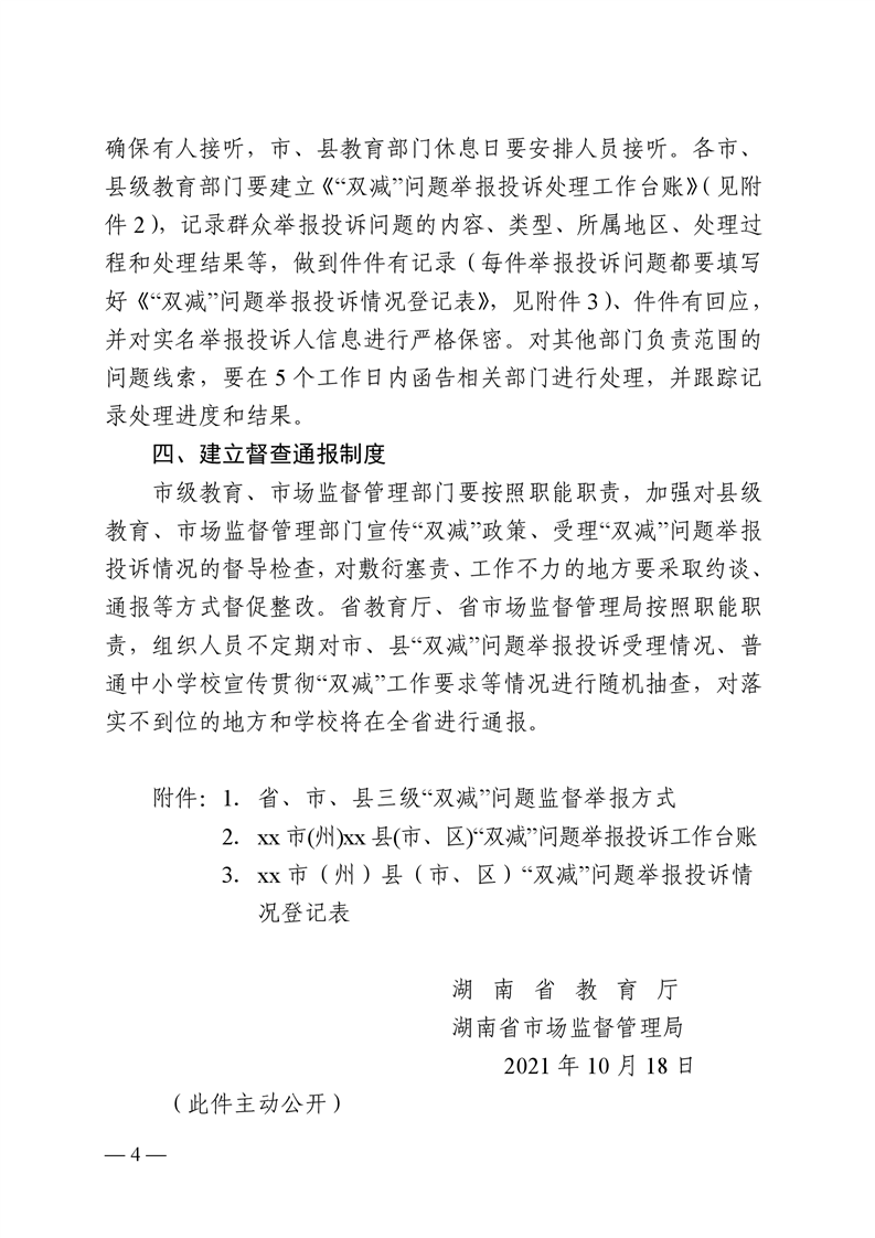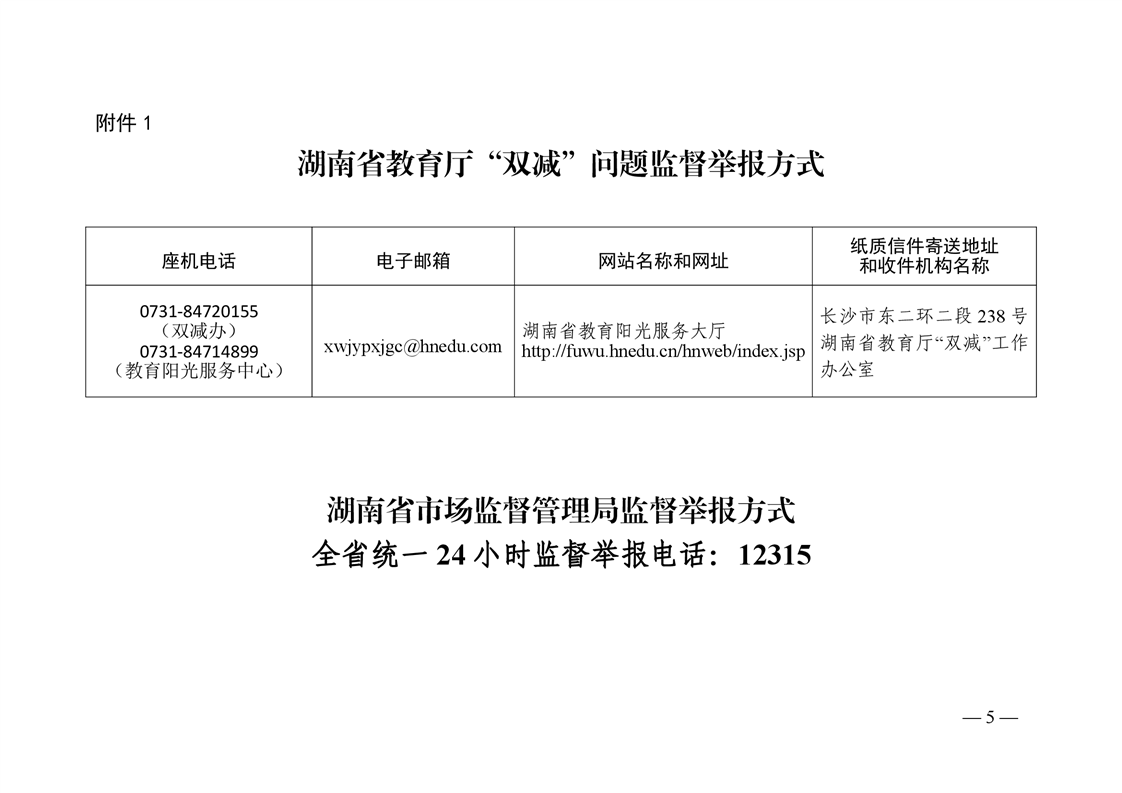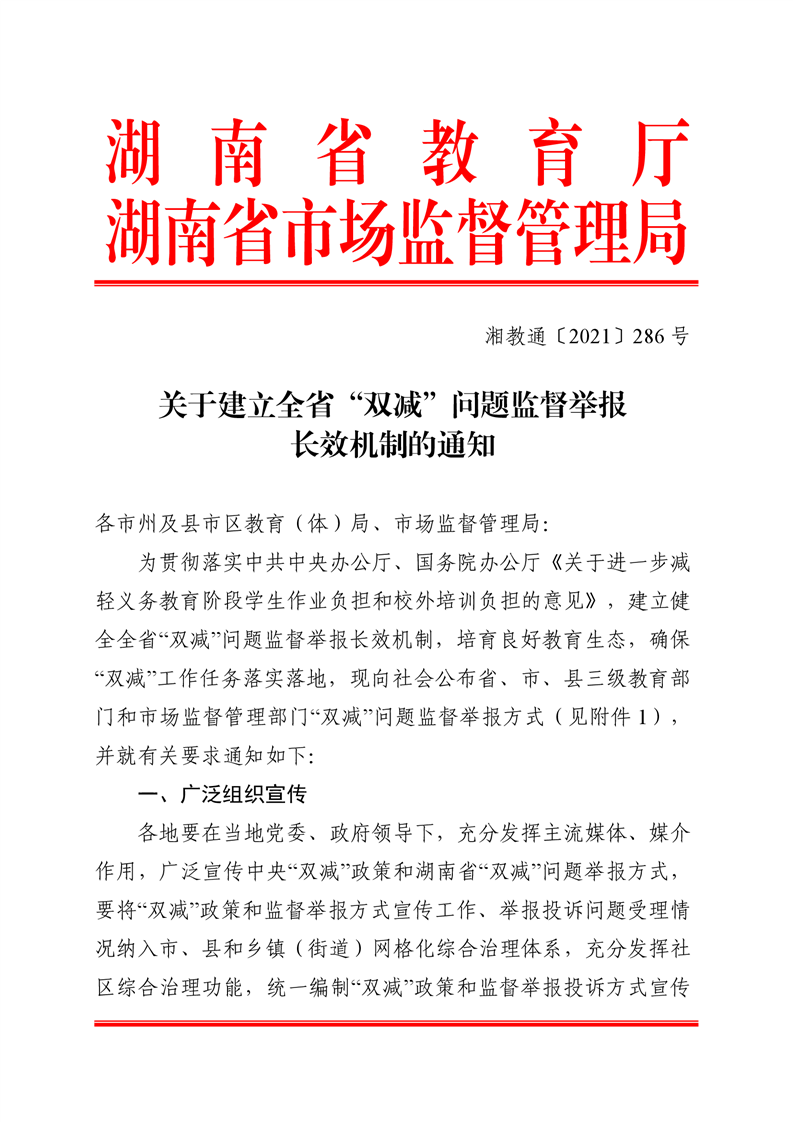 湖南省教育厅 湖南省市场监督管理局 关于建立全省“双减”问题监督举报长效机制的通知