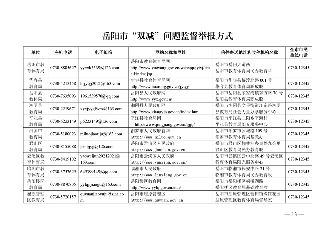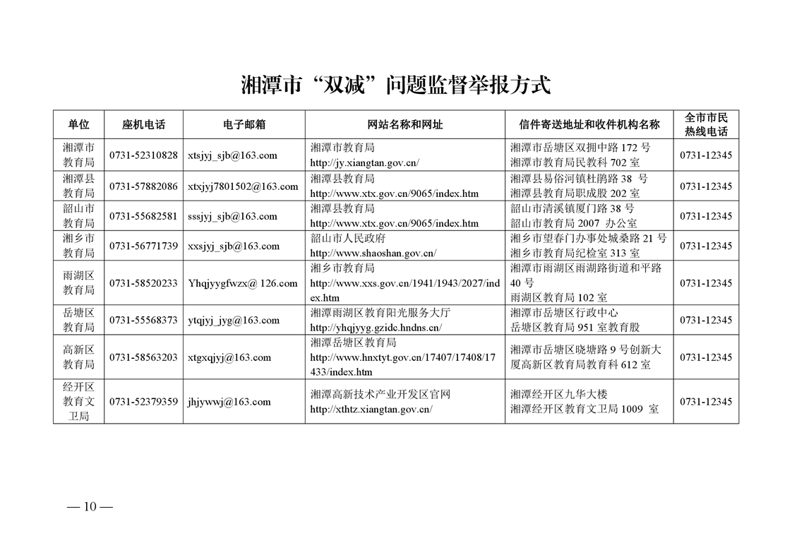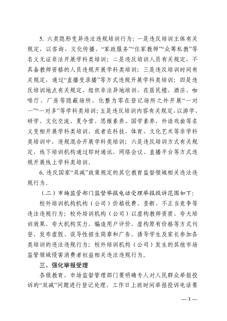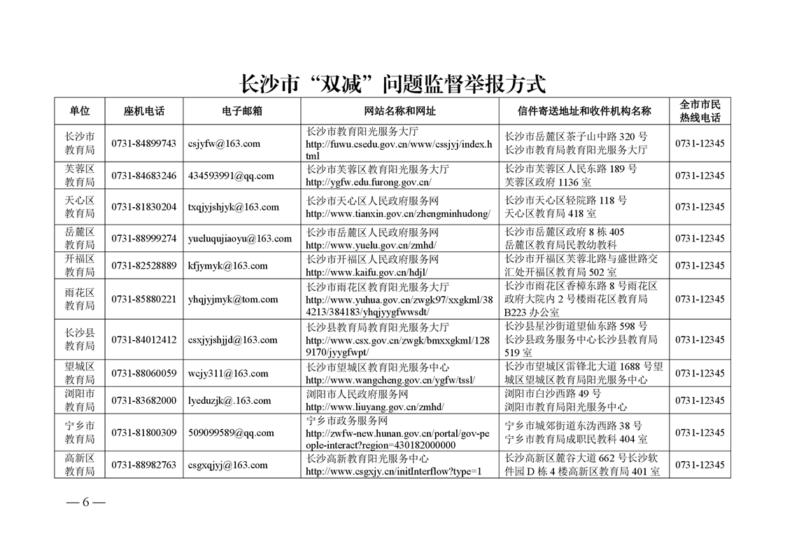 湖南省教育厅 湖南省市场监督管理局 关于建立全省“双减”问题监督举报长效机制的通知