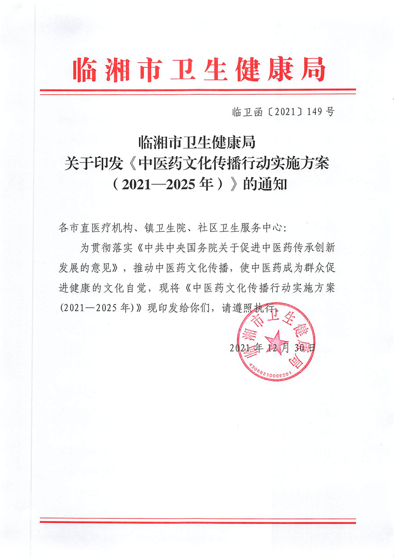 关于印发《中医药文化传播行动实施方案(2021-2025)》的通知