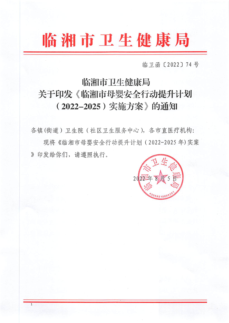 关于印发《临湘市母婴安全行动提升计划(2022-2025)实施方案》的通知