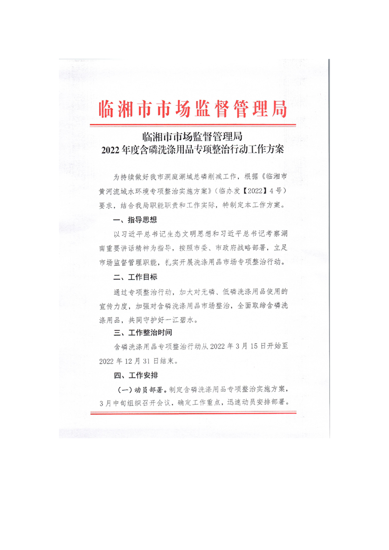 临湘市市场监督管理局2022年度含磷洗涤用品专项整治行动工作方案