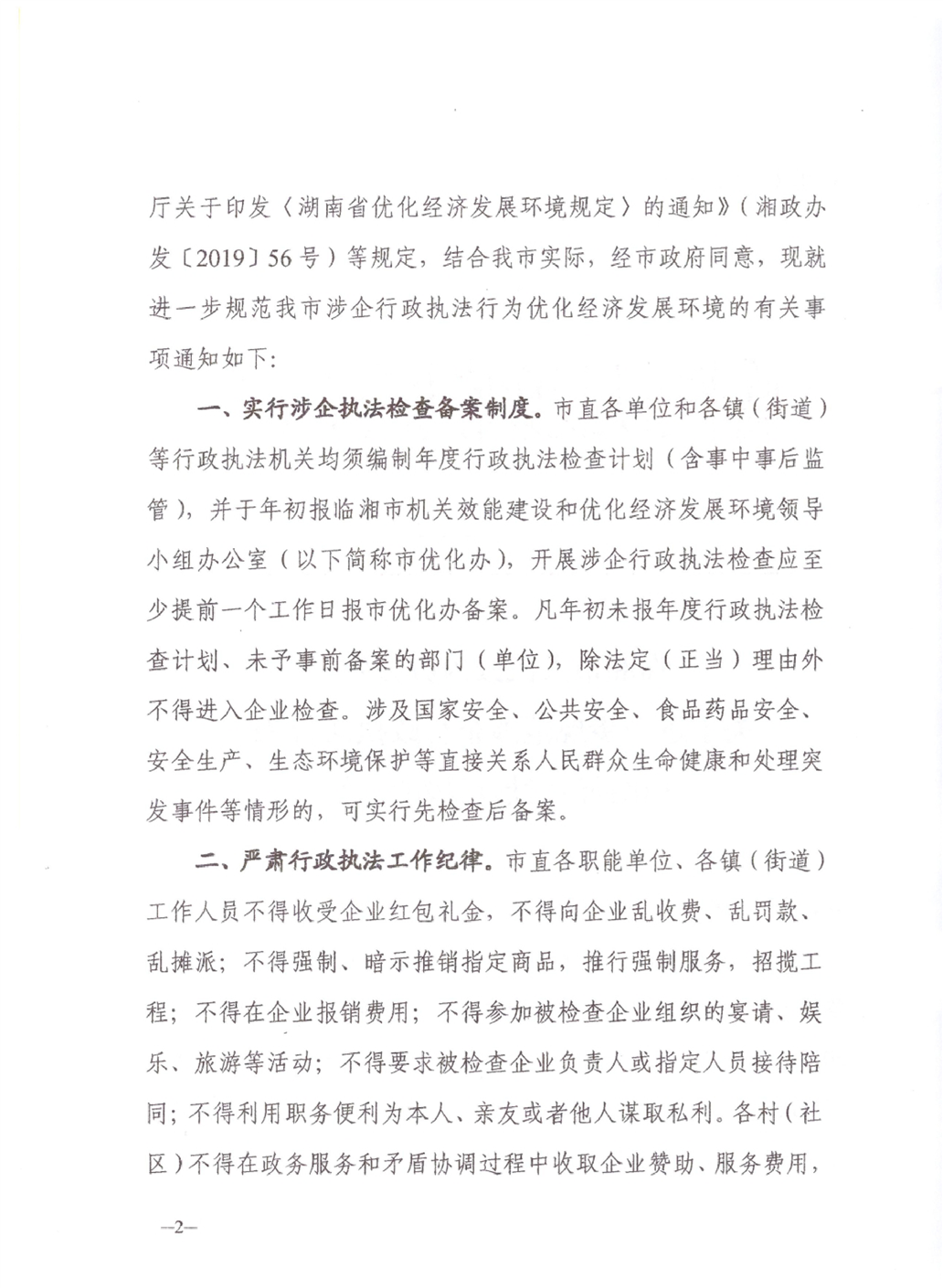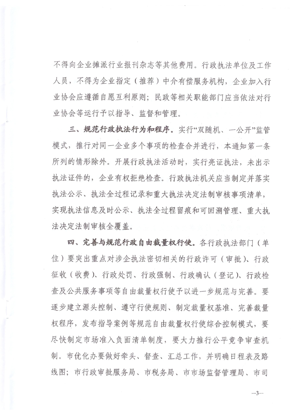 关于进一步规范涉企行政执法行为优化经济发展环境的通知