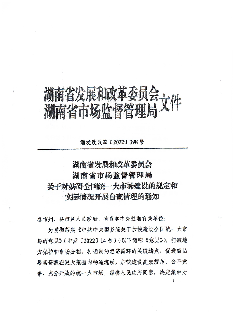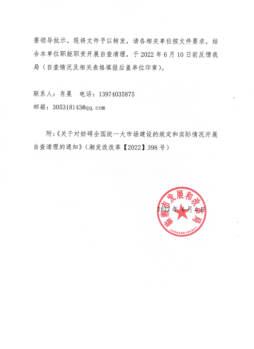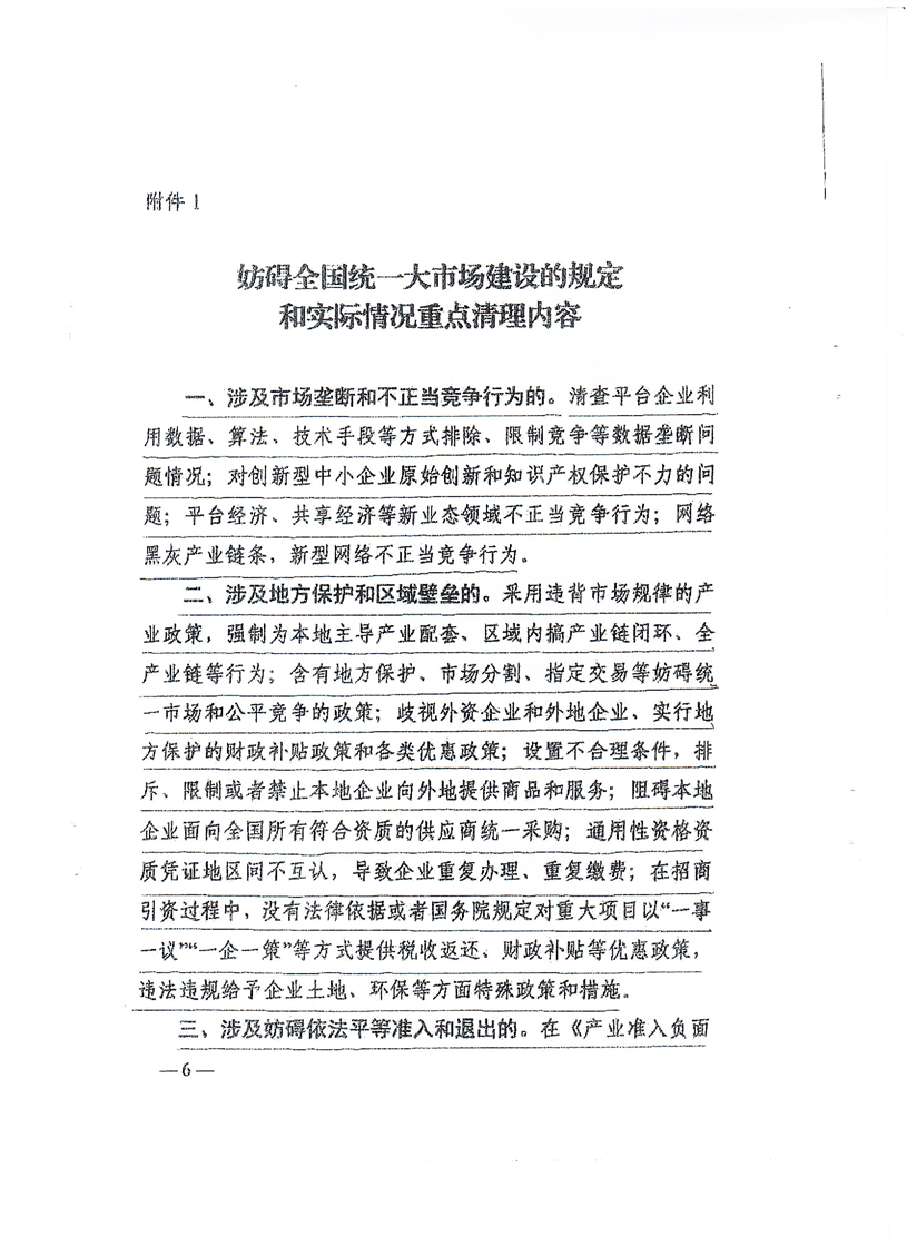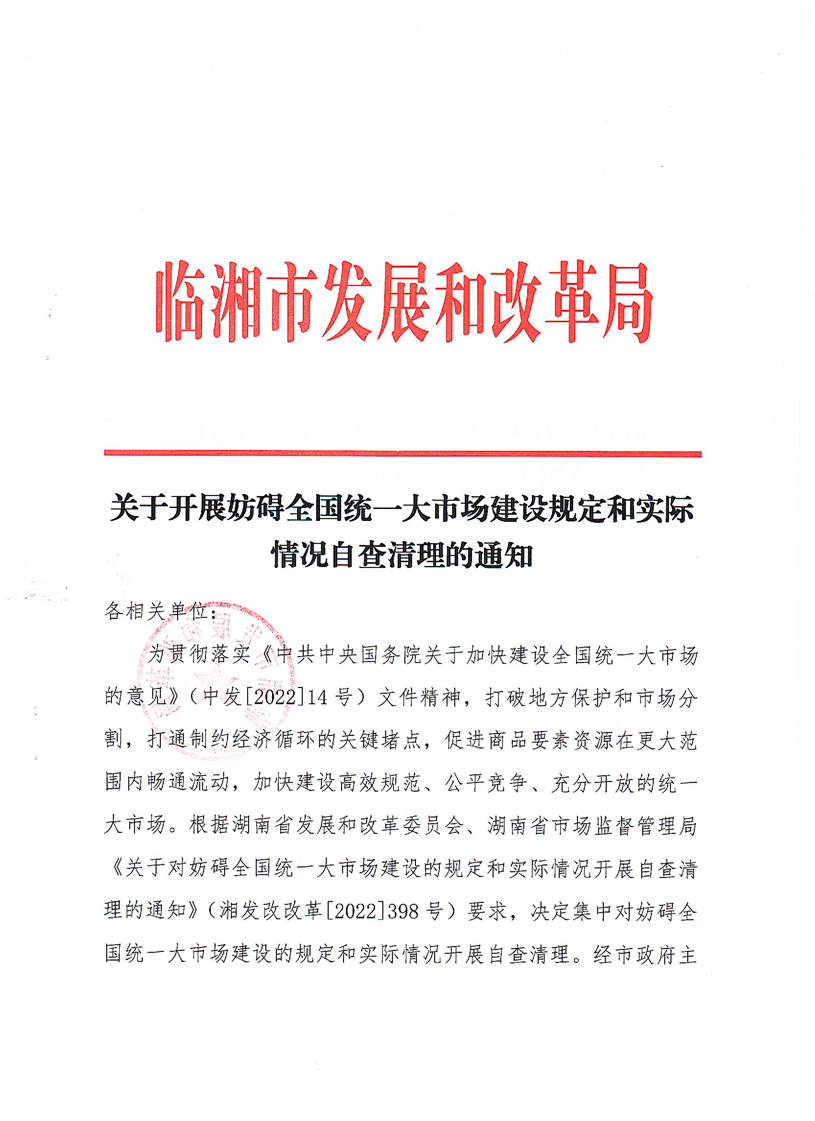 关于开展妨碍全国统一大市场建设规定和实际情况自查清理的通知