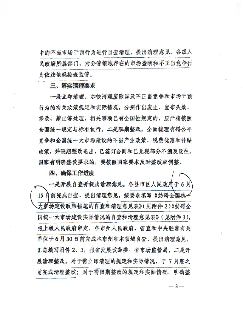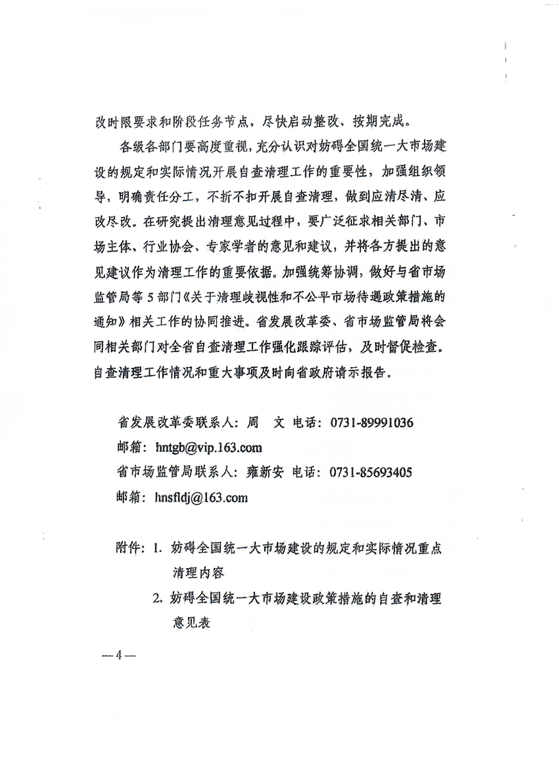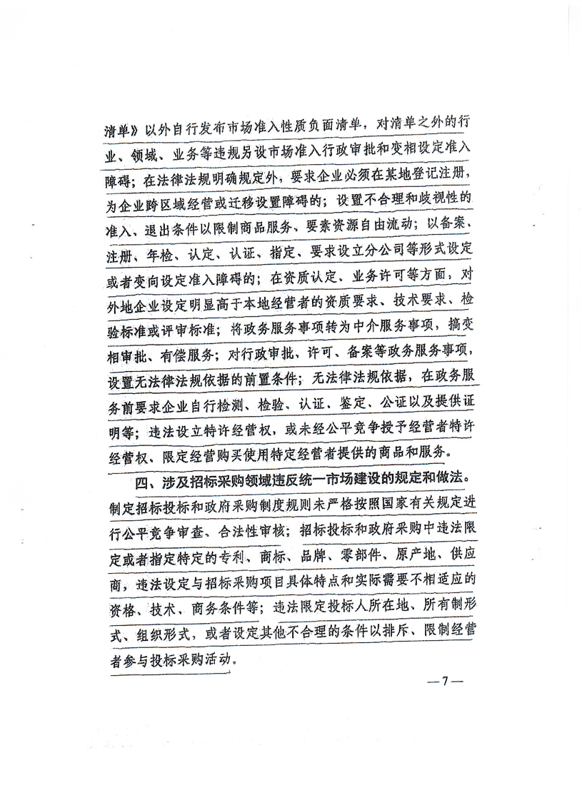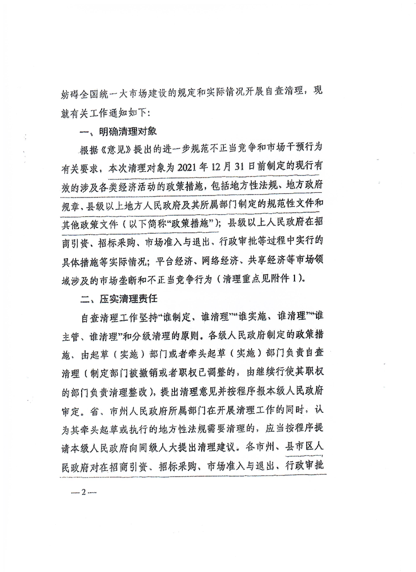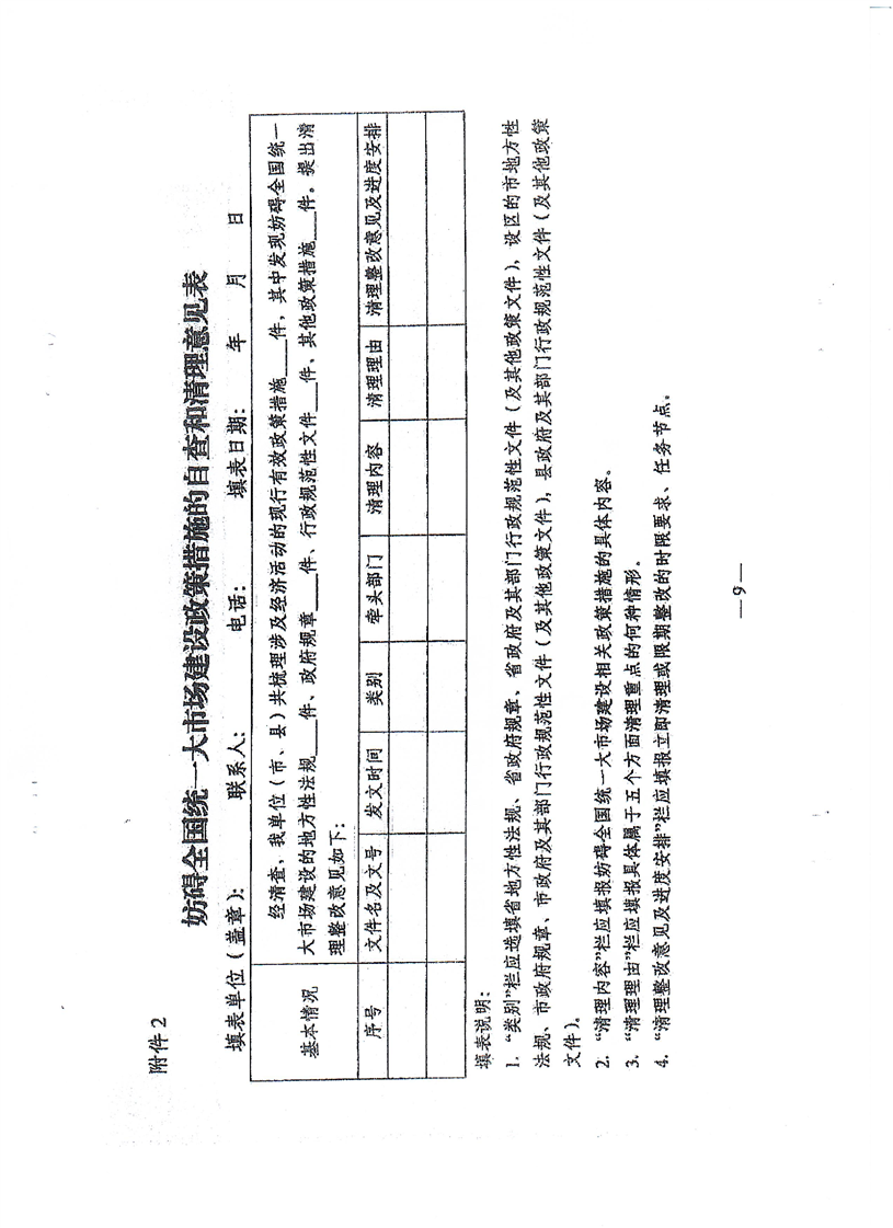 关于开展妨碍全国统一大市场建设规定和实际情况自查清理的通知