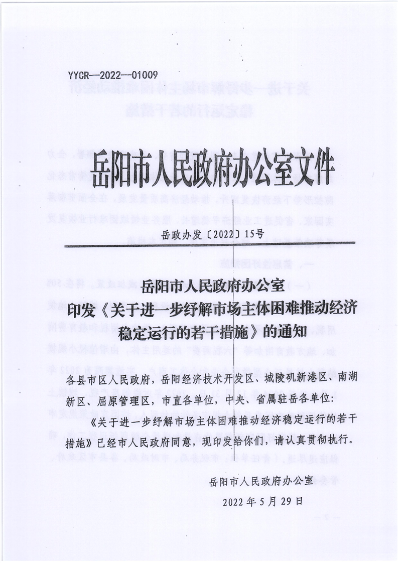 岳政办发【2022】15号关于印发《湖南省促进服务业领域部分困难行业恢复发展的若干政策》的通知