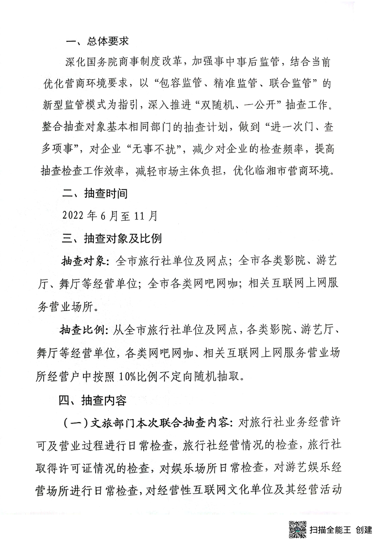 临湘市2022年部门联合执法双随机一公开监管抽查工作方案