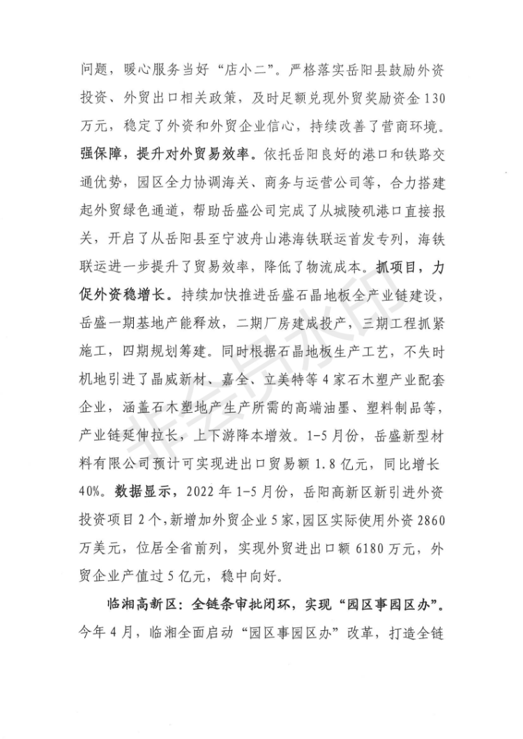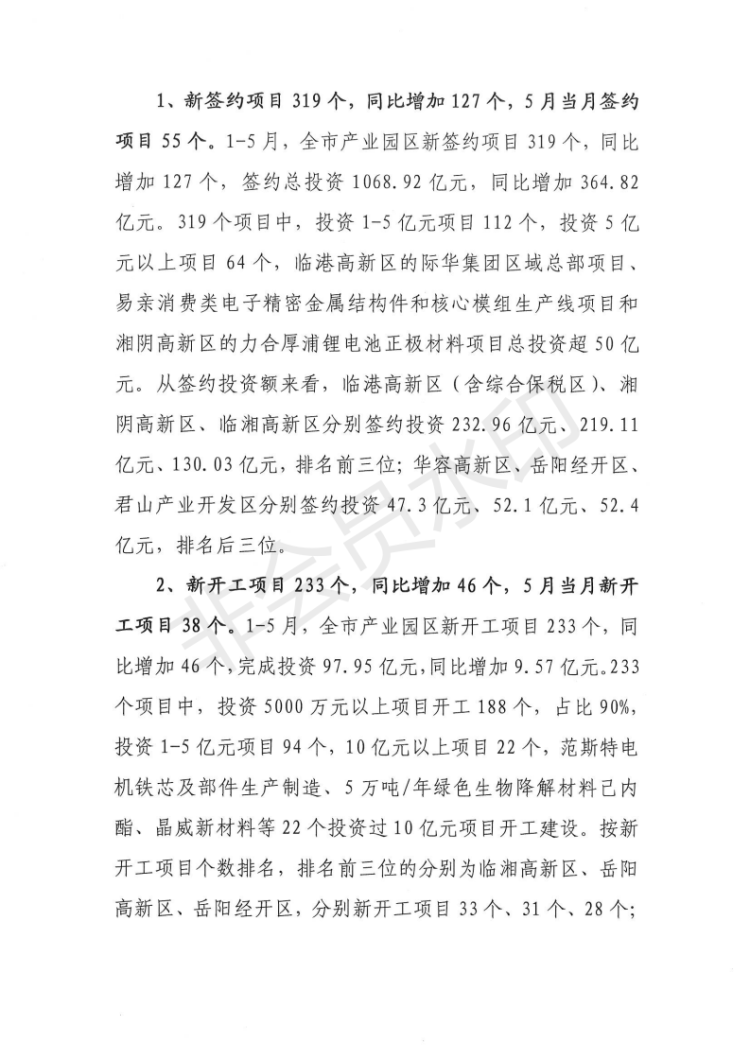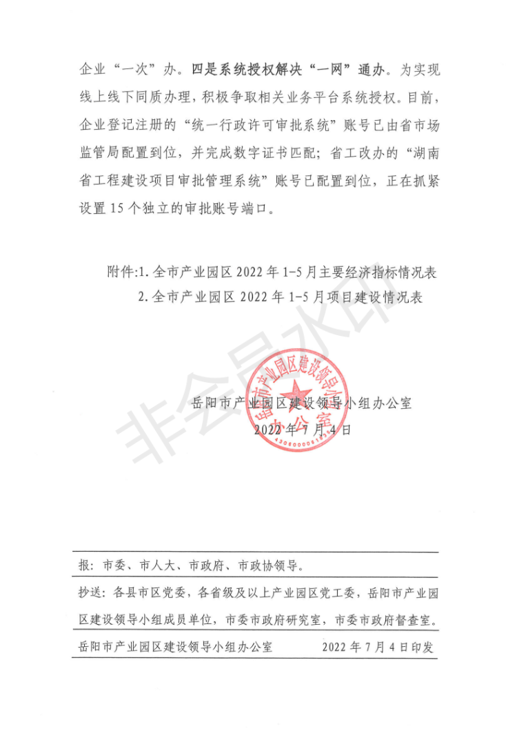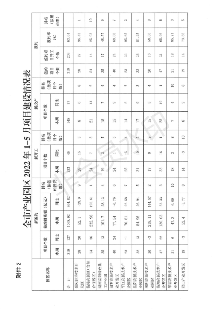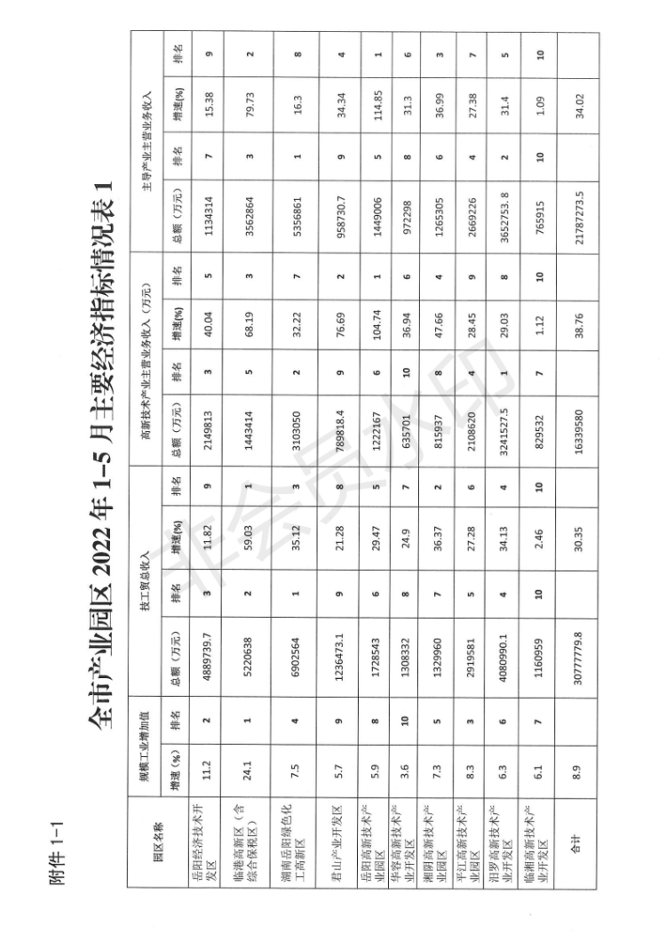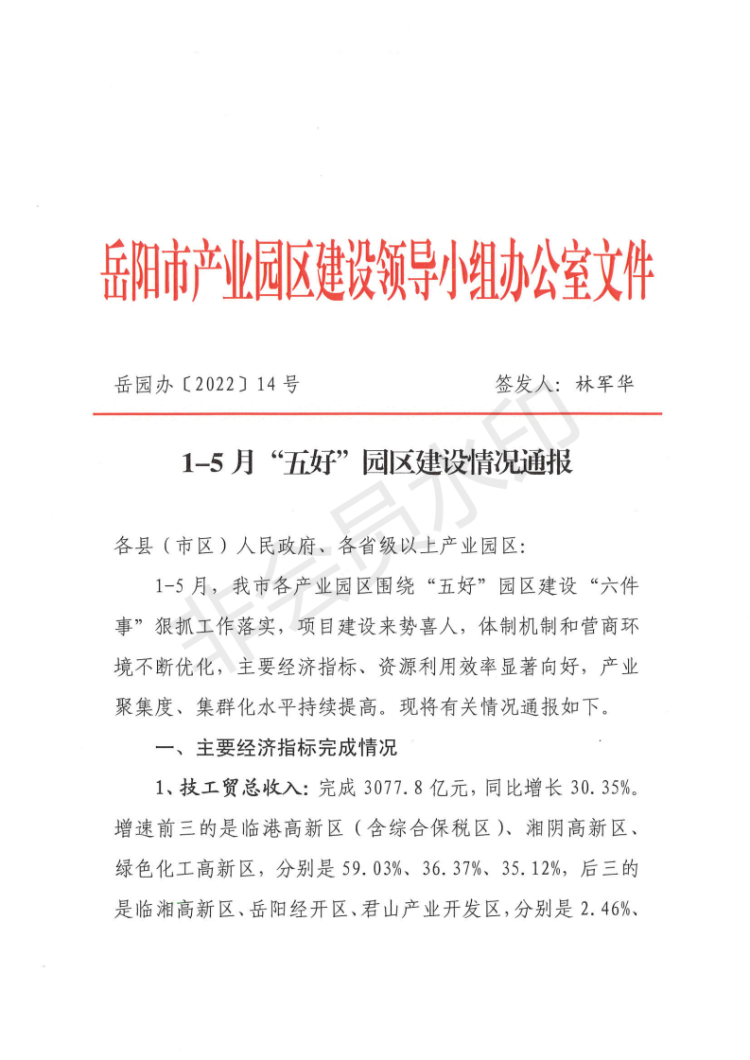 全市1-5月“五好”园区建设情况通报