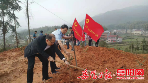 在沙团村原村部的老茶山上,该局调研组把产业发展与植树添绿工作有机结合起来,开展《建设绿色家园,构建和谐社会》植树主题活动。“开展这次植树主题活动,是局党组集体研究决定的,一致认为恰逢其时也很有必要。一方面,我们在老茶山上种植茶树,既有利于推动产业发展,也是建设新农村、改善人居环境的生动实践。另一方面,我们让干部职工短暂地离开座位、离开电脑,到现场来亲身体验和感受农业农村工作,起到了寓教于乐、寓教于劳的作用。”该局党组副书记、副局长张新生介绍道。植树现场,调研组一行挥锄挖坑、栽苗填土、压土浇水,一系列动作一气呵成,大家热情高涨、汗流浃背,用自己的实际行动为这片“黄土高原”披上了“绿色新衣”。