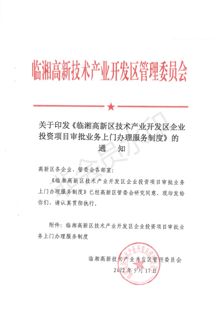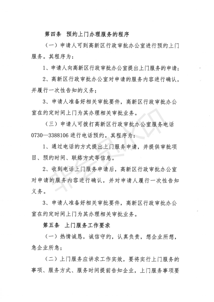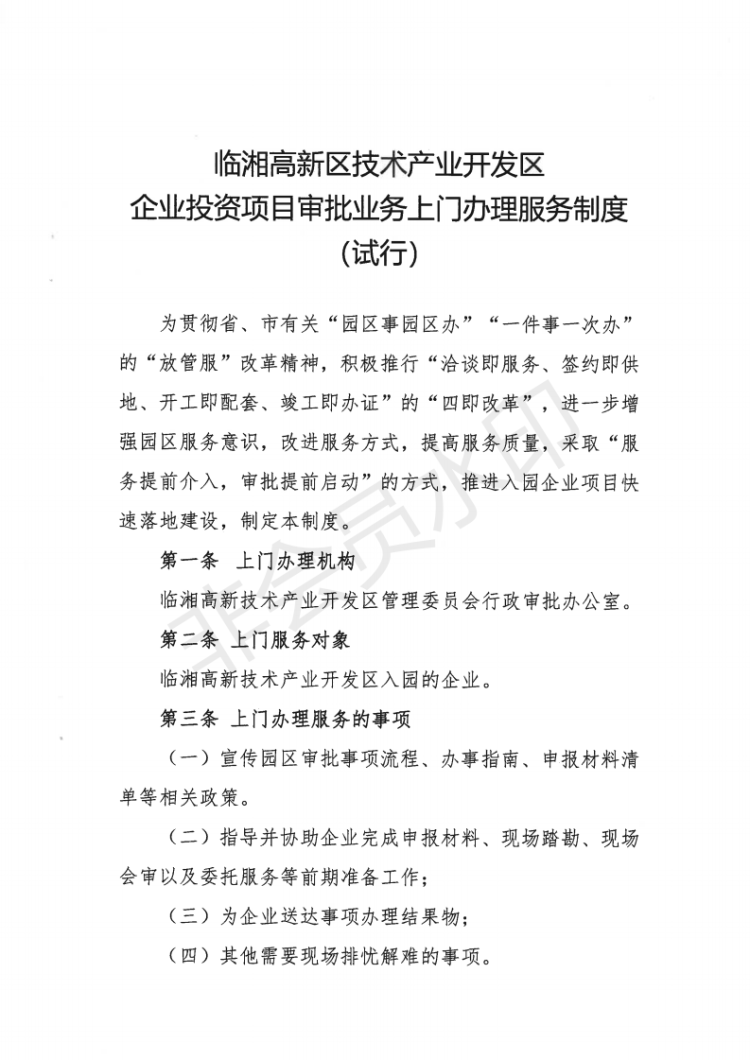高新区项目审批业务上门办理服务制度